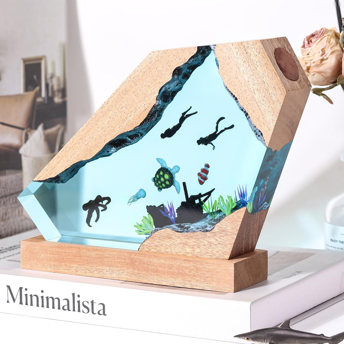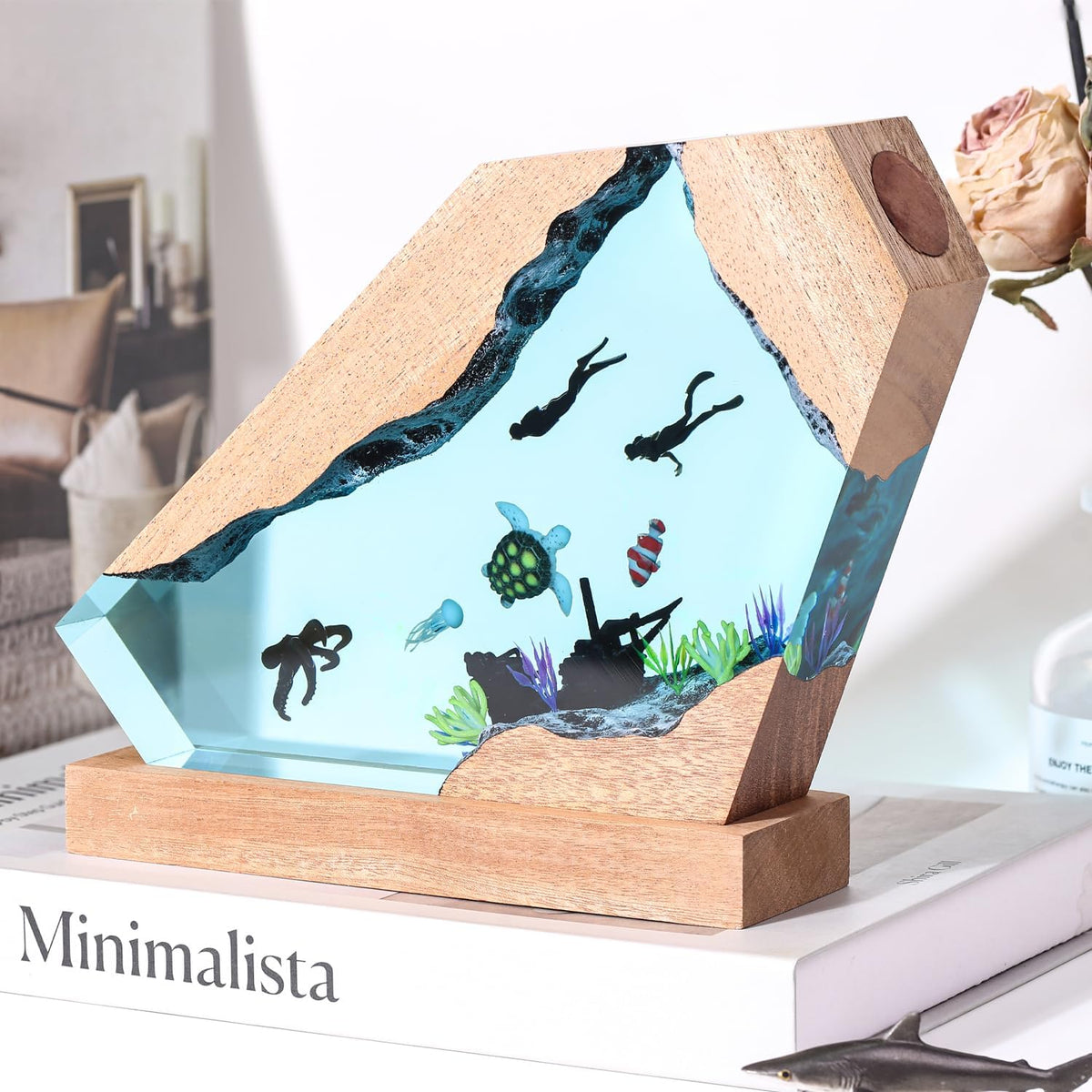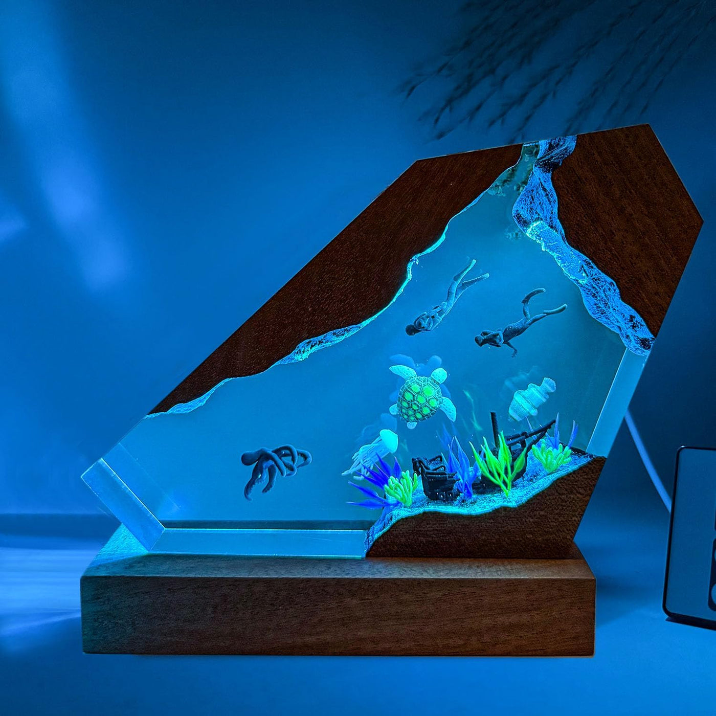 Nice Hera Octopus Ocean Resin Lamp Handmade Wooden Table Resin Night Light Usb Port Art Ornaments For Home Office Decor Scuba Diver Gifts For Birthday Holiday ValentineS Day Gifts For Husband