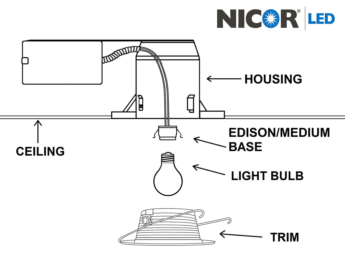 This NICOR 17014AR is an Aluminum 6-inch Remodel Housing designed for 6-inch LED Recessed Downlights, LED Retrofits, and traditional trims of all sorts. The Airtight and Insulation Contact Rated Housing (IC Allows for direct contact with insulation) helps keep your home insulated and Energy Efficient. Its suitable for residential and commercial applications and features Integral Thermal Guards that protect against overheating (usually due to using an incorrect wattage or bulb). The 17014AR is also Wet-Location rated when used with Wet-Location rated downlights and trims. The housing adjusts from 0.5 to 1.5-inches to accommodate ceiling drywall thickness. The 5.75-inch housing height allows it to be used in 2 x 6-inch joist construction. Comes protected with NICORs 1 Year Limited Warranty. At NICOR, were always looking for ways to make your light better. We continue to innovate, challenge our thinking and improve our processes. We look to earn your business by delivering progressive lighting solutions designed to balance value with the highest design performance possible. Were determined to bring you reliable products that provide real solutions. When you choose a NICOR product, you can rest assured youre getting a product that has been tested to the highest standards available. Our commitment is to be a leader of reliability, innovation, and excellence because we understand just how important you are.