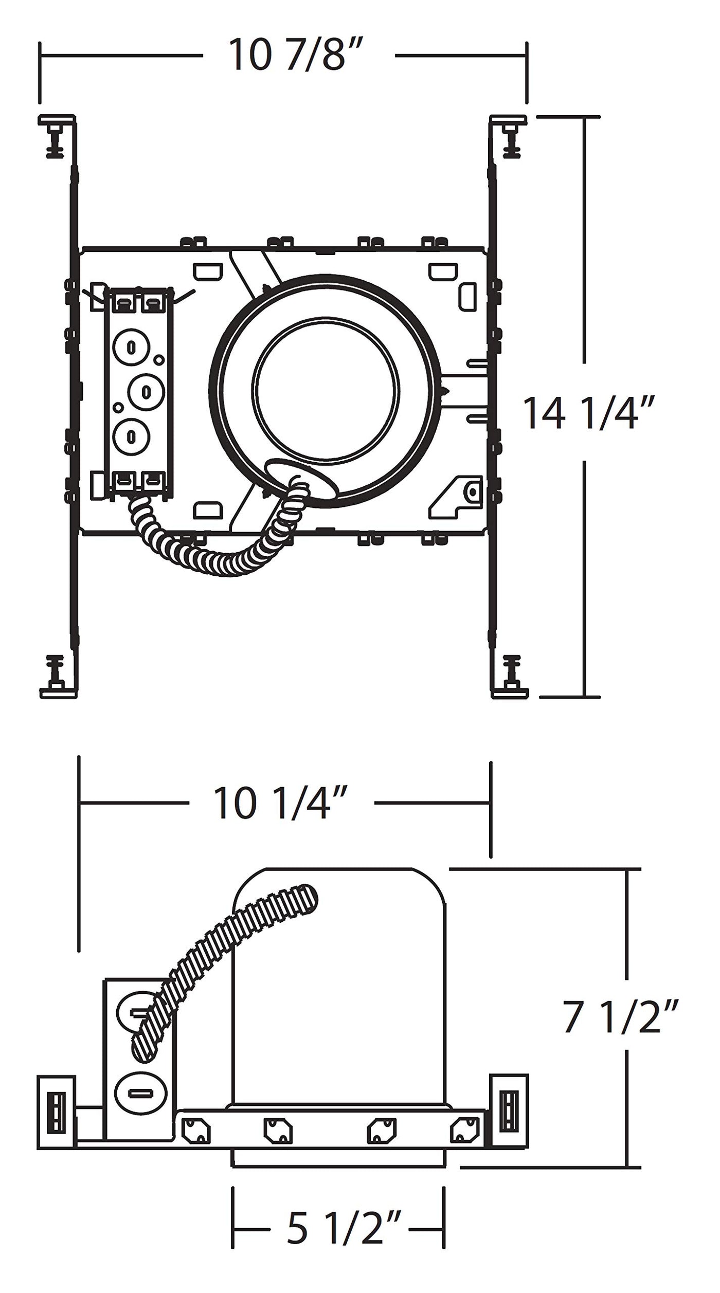 This 5-inch line-voltage aluminum airtight housing is rated for insulation contact. This housing is suitable for new construction in both residential and commercial applications. Features thermal protector guards, adjustable hanger bars, and IDEAL push-in wire connectors for easy installation. Protected with NICORs 1 Year Limited Warranty. At NICOR, were always looking for ways to make your light better. We continue to innovate, challenge our thinking and improve our processes. We look to earn your business by delivering progressive lighting solutions designed to balance value with the highest design performance possible. Were determined to bring you reliable products that provide real solutions. When you choose a NICOR product, you can rest assured youre getting a product that has been tested to the highest standards available. Our commitment is to be a leader of reliability, innovation, and excellence because we understand just how important you are.