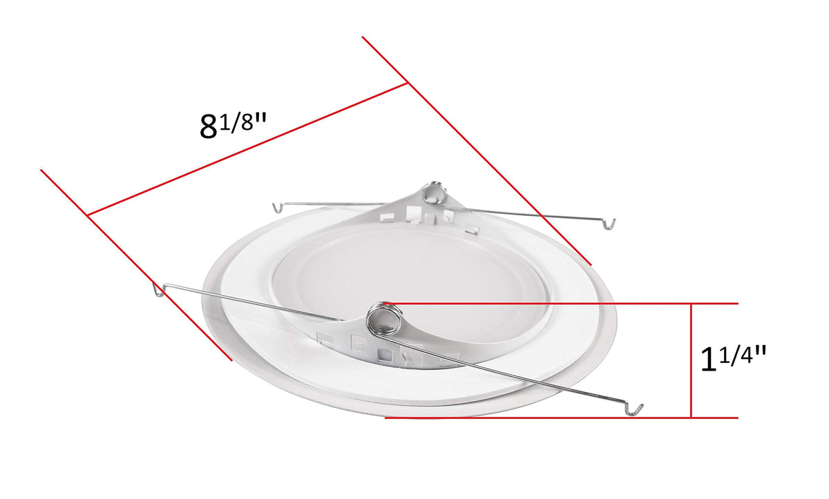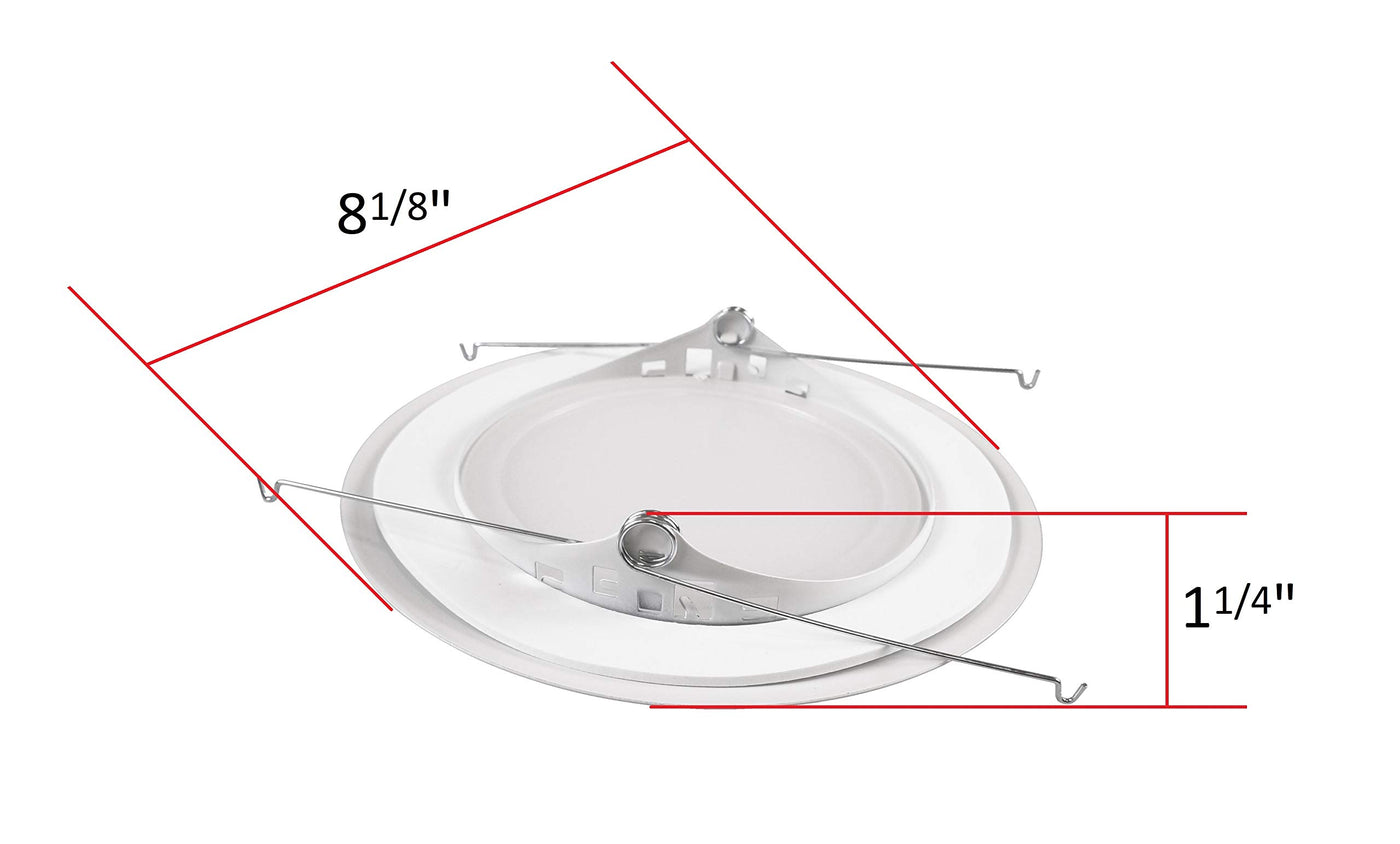 Q: What are the dimensions of the NICOR shower trim?A: The NICOR Lighting 6 inch Recessed Shower Trim measures 8 inches in diameter, with a glass lens aperture of 5.25 inches.