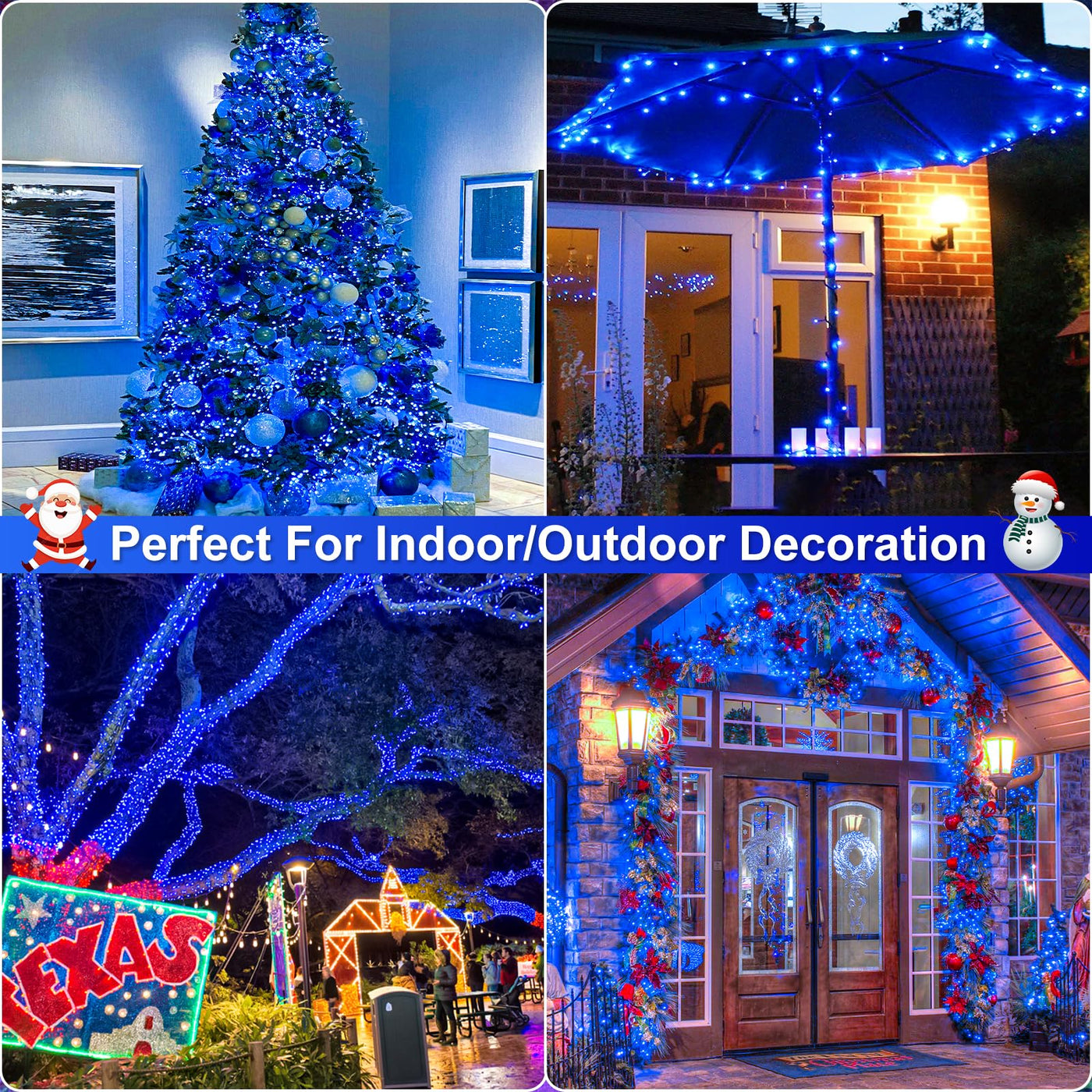 Nielfoi 328Ft 1000 Led Christmas Lights Plug In Blue Christmas Tree Lights Outdoor With Timer And 8 Modes Green Wire Waterproof String Lights For Indoor Yard Patio Xmas Holiday Decorations