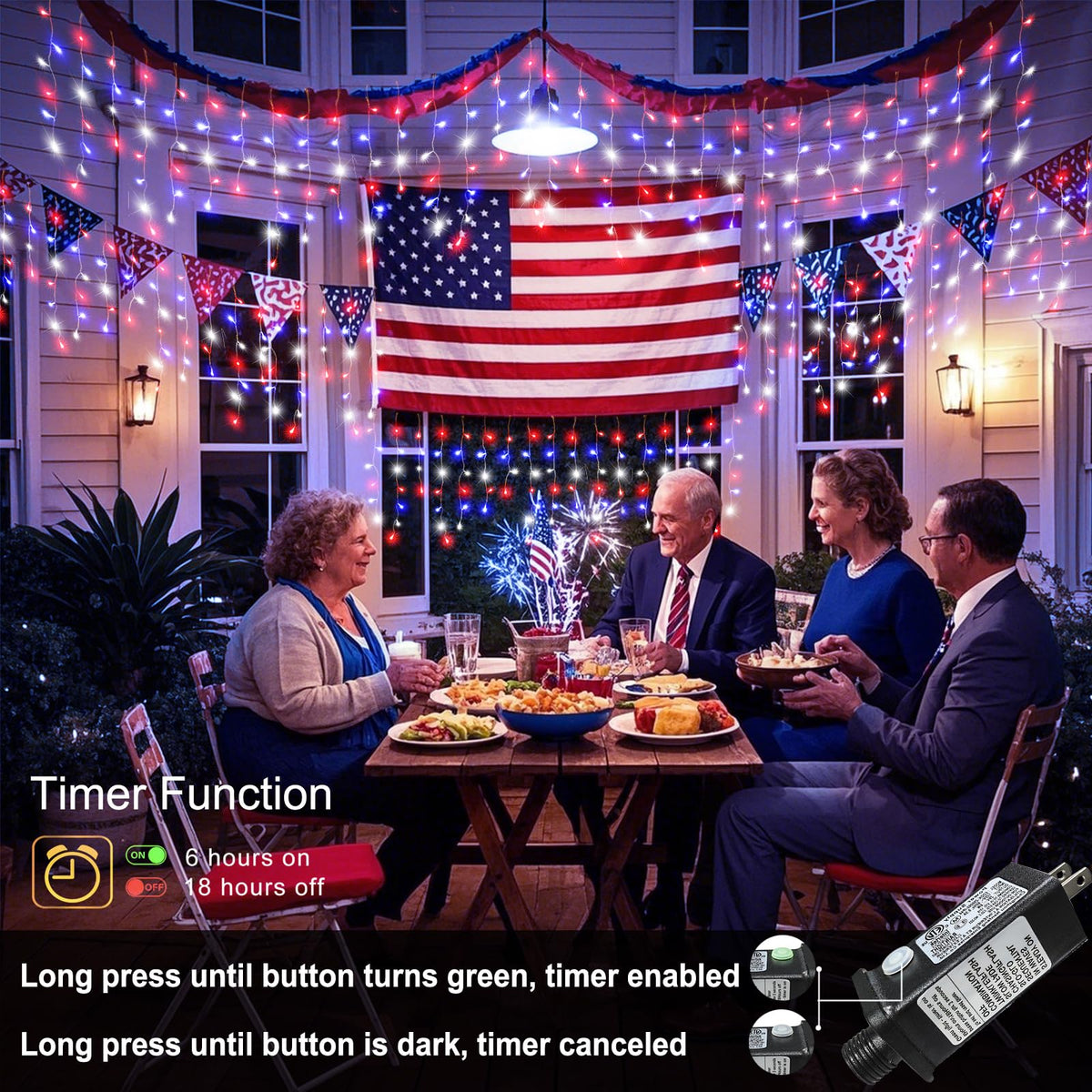 The Nielfoi 33ft 400 LED Red White and Blue Lights are perfect for enhancing your 4th of July celebrations and outdoor decorations. Designed to create a festive atmosphere, these connectable twinkle lights are ideal for various occasions, including Independence Day, holiday parties, and outdoor gatherings.