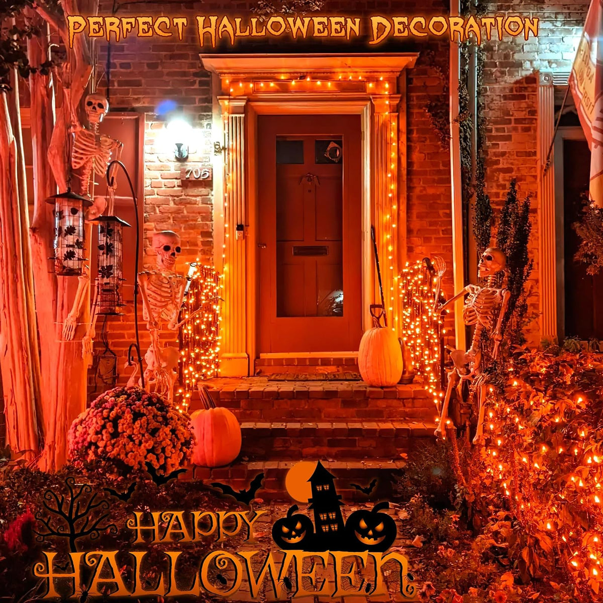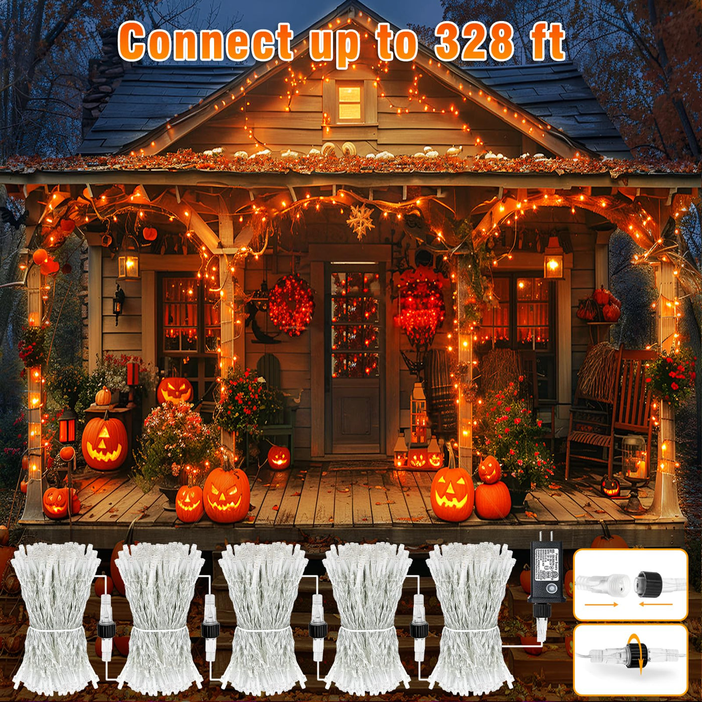 Nielfoi 66Ft 200 Led Christmas Lights Outdoor Orange Christmas String Lights Indoor Waterproof 8 Modes Timer Connectable Clear Wire Twinkle Fairy Lights For Indoor Bedroom Tree Party Holiday Decor