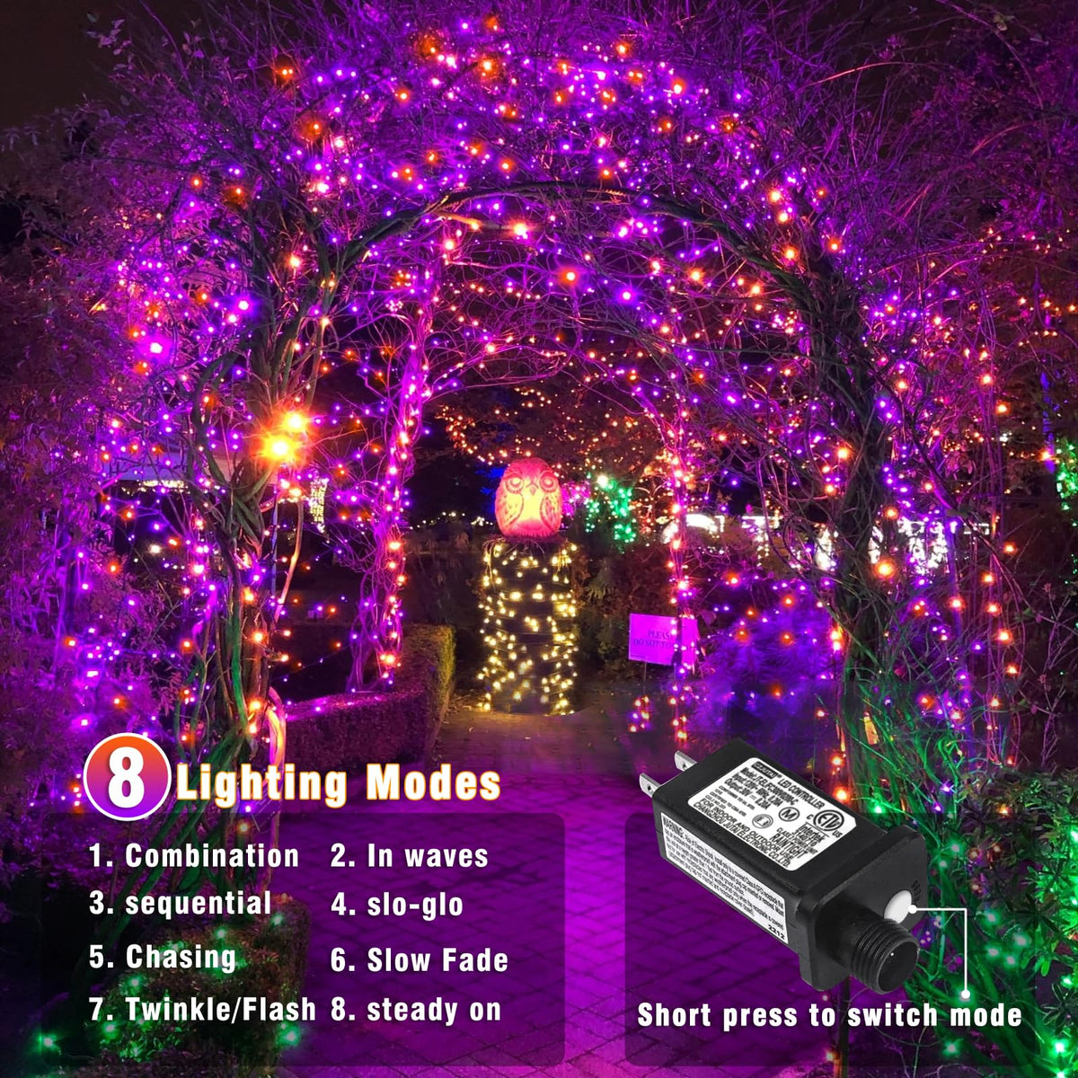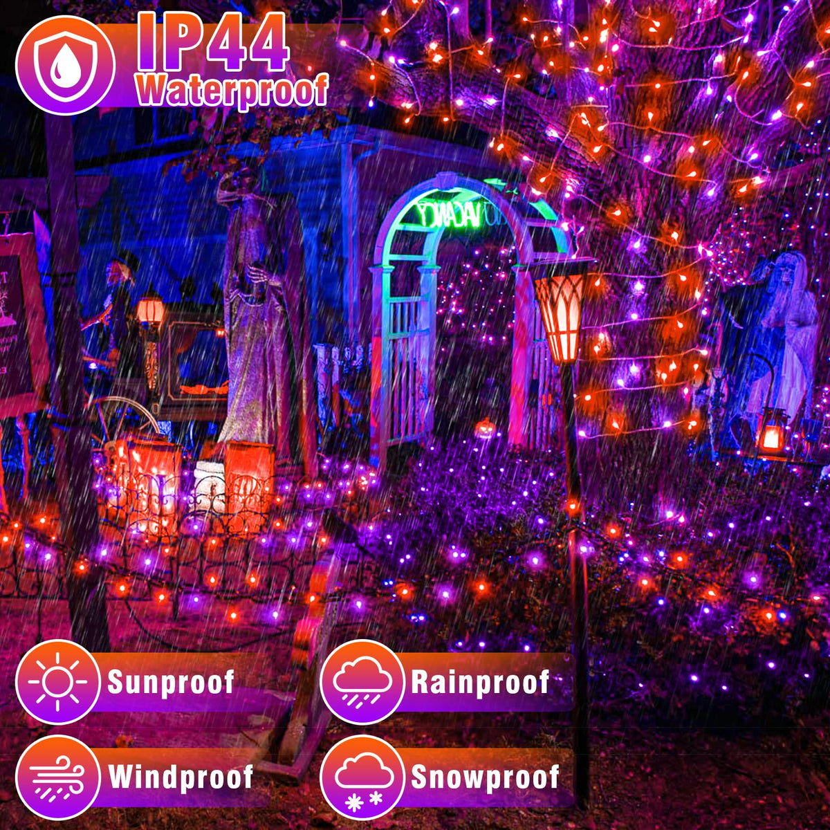 Nielfoi 66Ft 200 Led Christmas Lights Outdoor Orange & Purple Christmas String Lights Indoor Waterproof With 8 Modes Connectable Clear Wire Twinkle Fairy Lights For Indoor Home Xmas Garden Decor