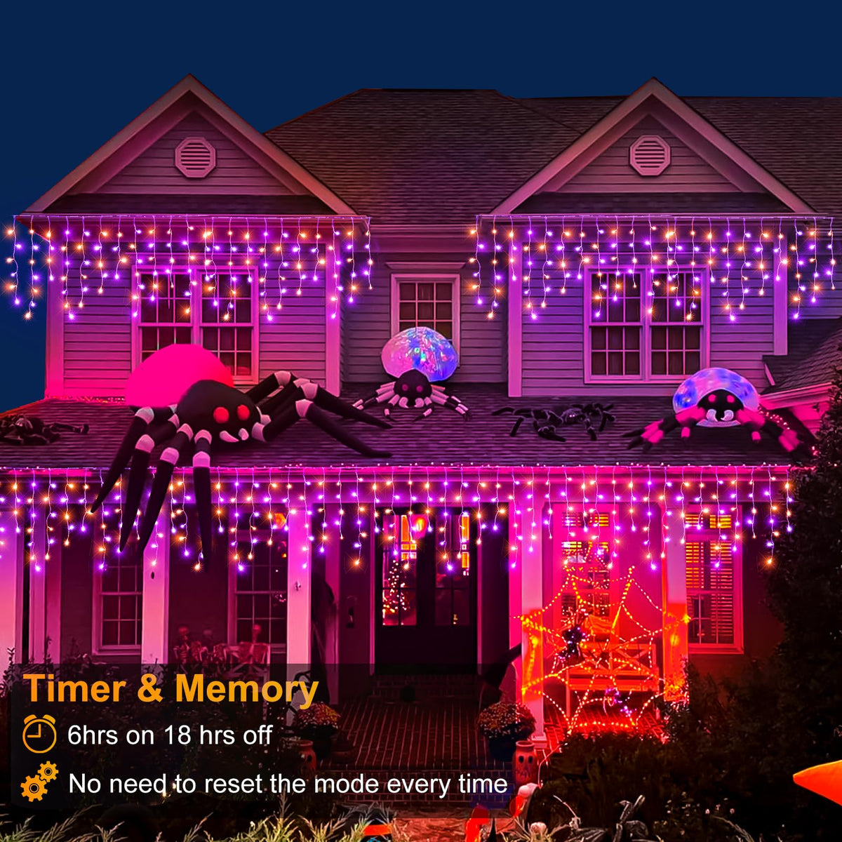 Illuminate your holiday celebrations with the Nielfoi Orange and Purple Halloween Lights. Designed for both indoor and outdoor use, these vibrant 33ft icicle lights feature 400 LED bulbs, making them perfect for decorating your home, yard, or party space.