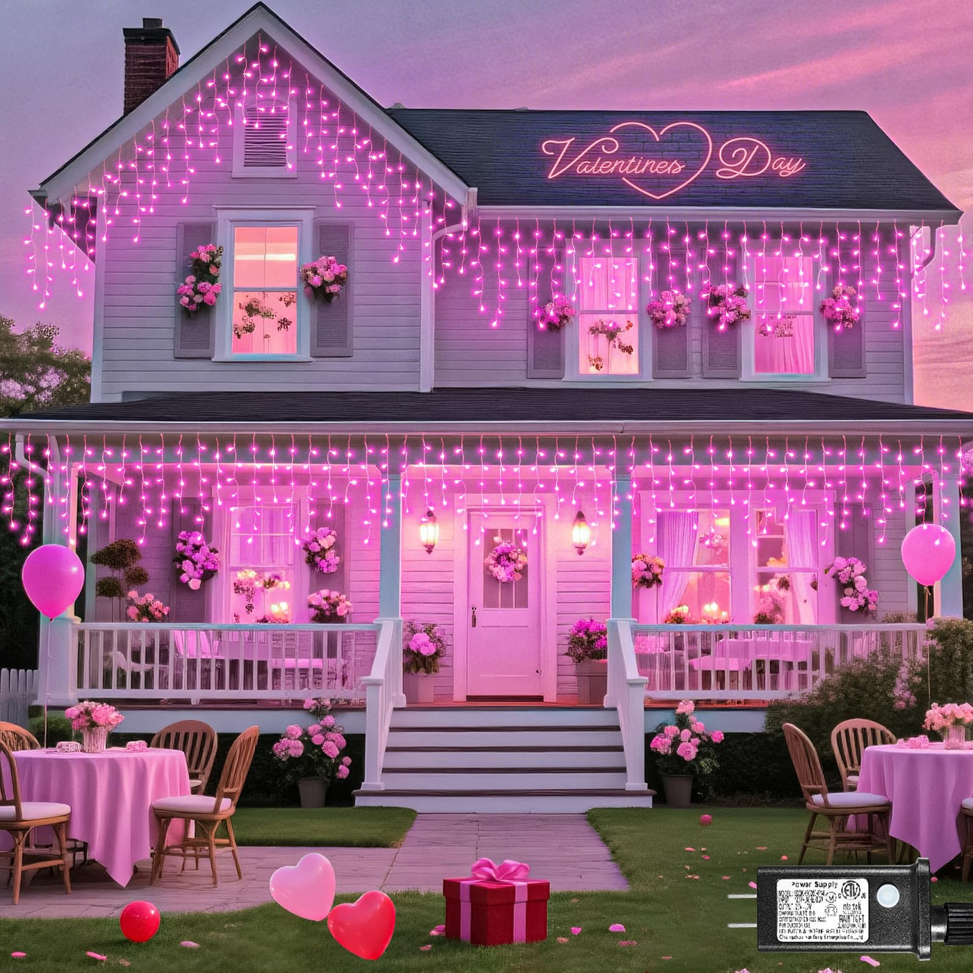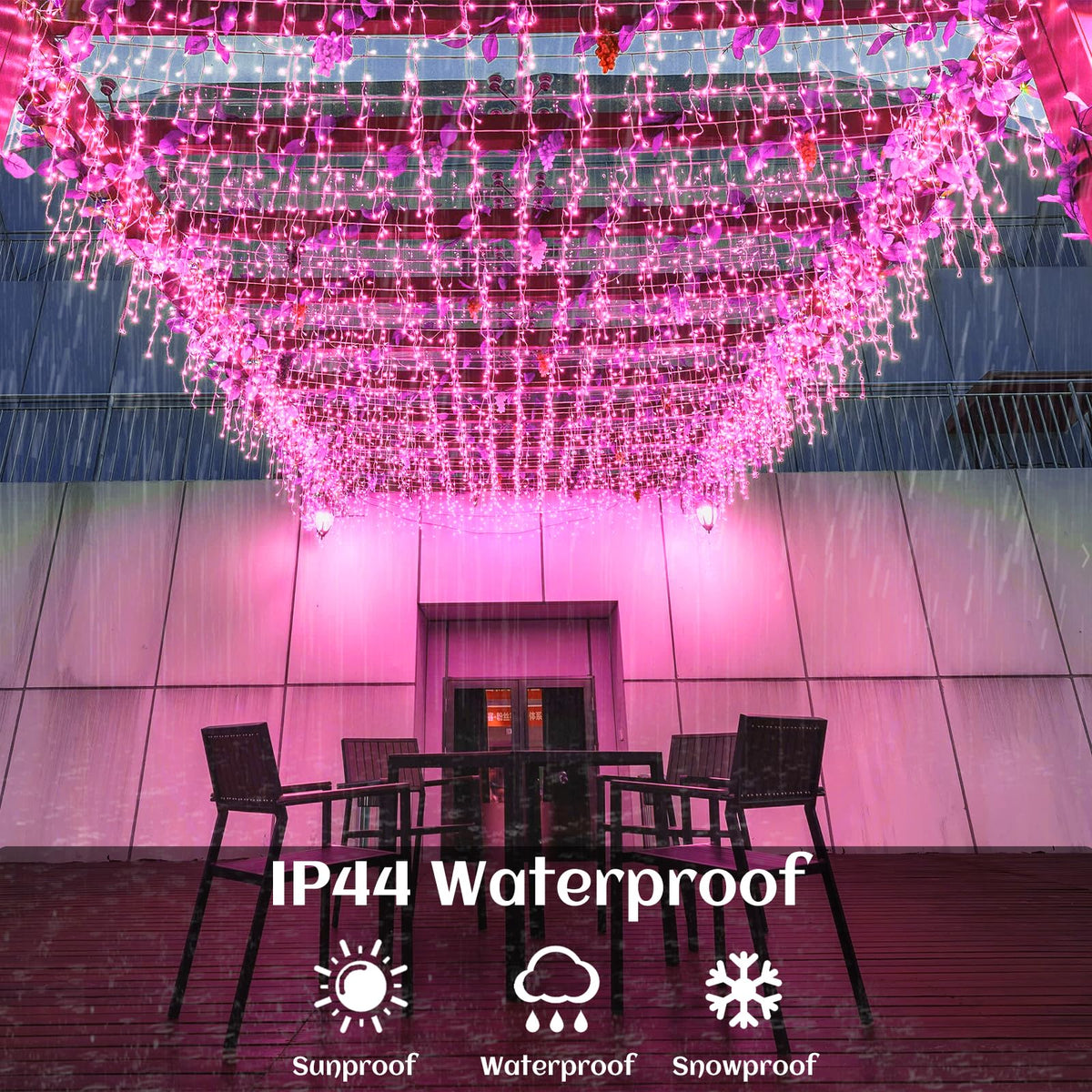 Enhance your holiday decor with the Nielfoi 66ft Pink Icicle Lights, designed for both indoor and outdoor use. These beautiful twinkling lights are perfect for adding a festive touch to your home, whether adorning your eaves, trees, or walls.