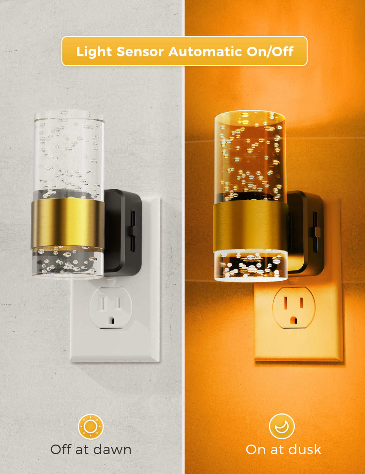 Night Light, 1-Pack Modern Night Lights Plug Into Wall, Dimmable Amber Night Light With Auto Light Sensor, Wall Sconce-Style Des