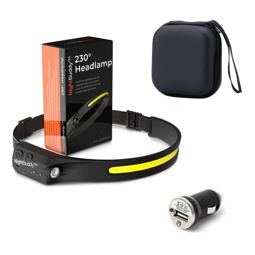 Nightbuddy The Original Led Headlamp Rechargeable Flashlight For Adults Camping Essentials Backpacking Lights 4X Brighter Than Headlight Headband Lamp 5 Light Modes Hiking Gear (Headlamp + Car Kit)