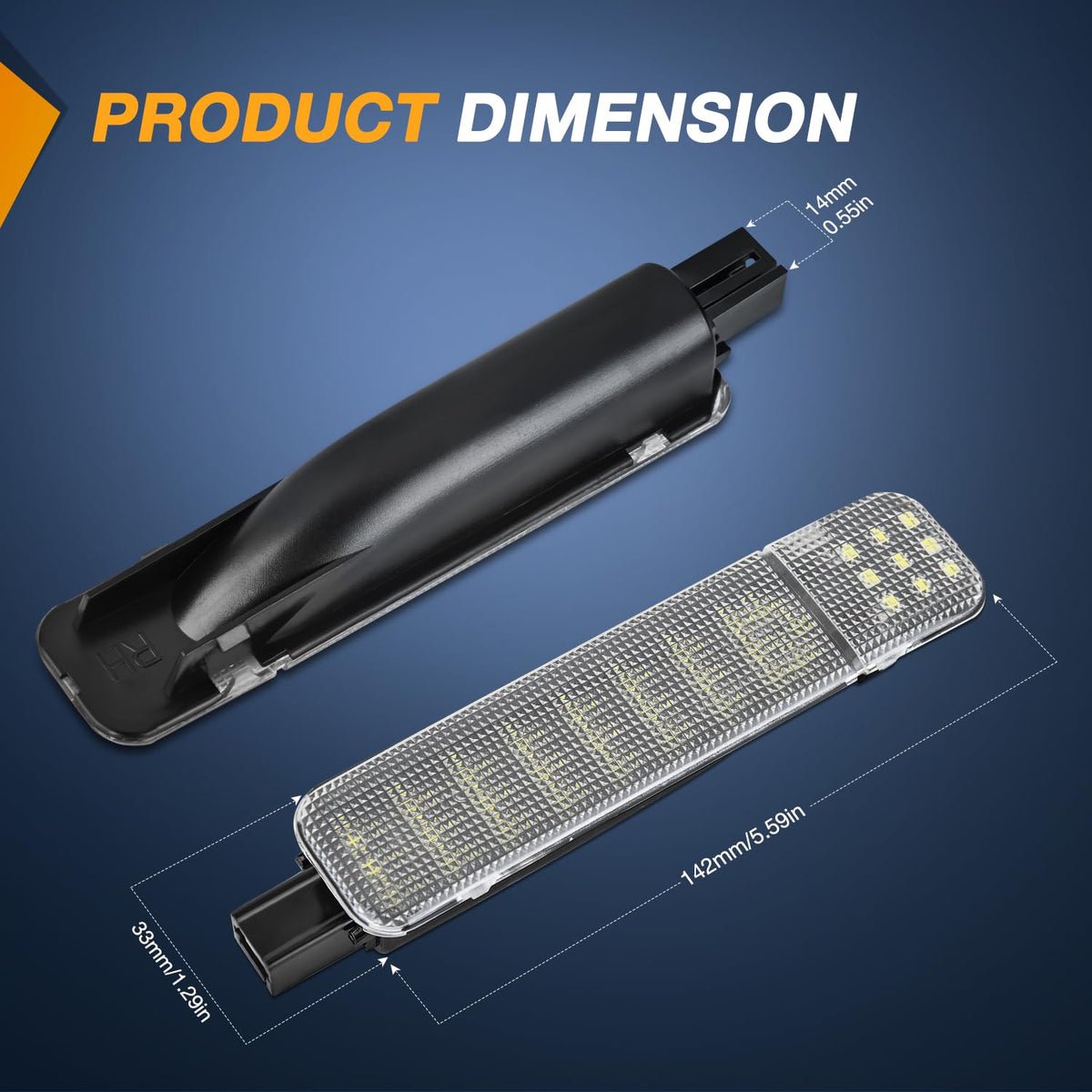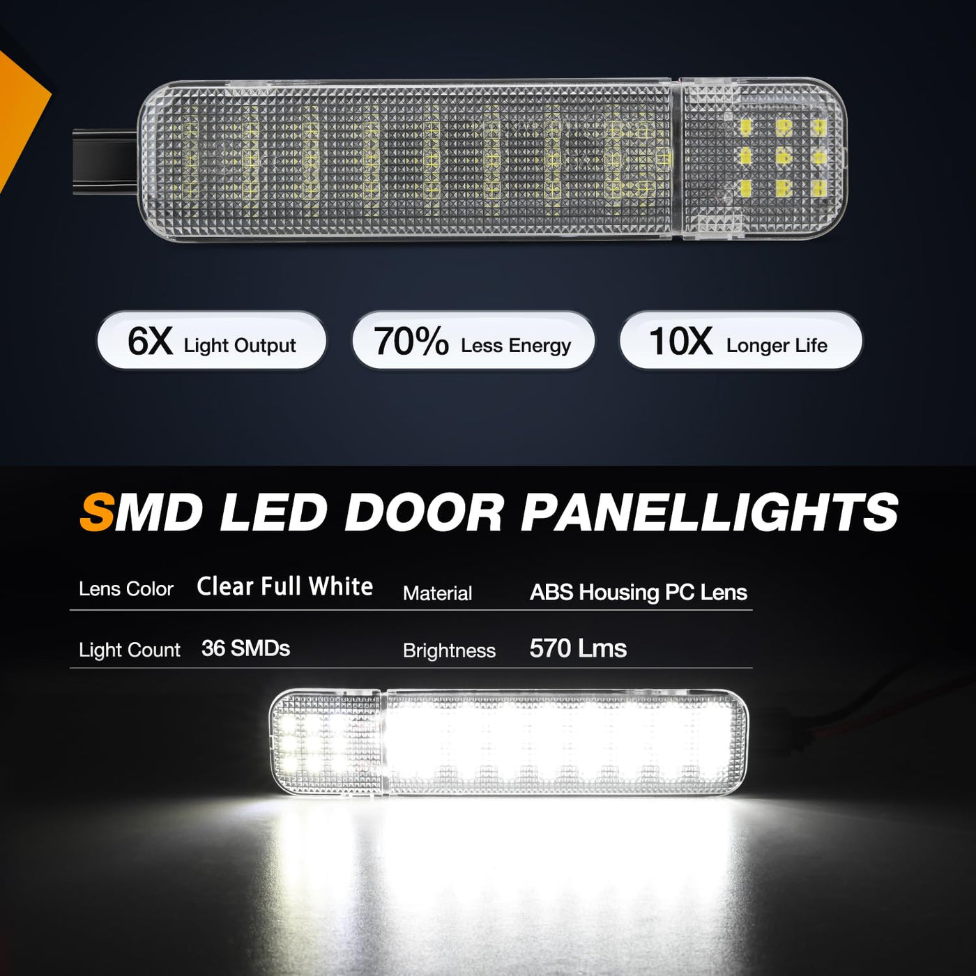 Suitable Vehicles: Compatible with 1997-2000 Chevy & GMC C & K Series 1500 2500 3500 Pickup, 1996-2000 Chevy & GMC C & K Series 1500 2500 Suburban, 1999-2006 Cadillac Escalade, 1995-2006 Chevy Tahoe, 2000-2006 Chevy Suburban 1500 2500, 1995-2006 GMC Yukon, 2000-2006 GMC Yukon XL 1500 2500, 2003-2009 Hum-mer H2, 2002-2006 Chevy Avalanche 1500 2500, 1999-2006 Chevy Silverado 1500 2500 HD 3500 HD Pickup, 1999-2006 GMC Sierra 1500 2500 3500 Pickup, 2007 Chevy Silverado/GMC Sierra Classic 1500 2500 3500 | Build to last & Super Bright: Made of premium ABS housing and lens, won't faded at long-time exposure; 6 times brighter than original incandescent bulb housing light. Built-in high power SMD LED chips to maximize illumination on the interior side doors | Safer: They are a very common safety device, works as a courtesy and a puddle light, also a warning light at night to avoid accidents | Easy Install & Perfect Fit: Identical to OEM specification. No modification or trimming needed. Simply remove the original one, then plug the new, done within 3 minutes | Package Including: 1 pair of right and left side LED door panel lights. Replace OEM Part Number: 15021517, 15021518