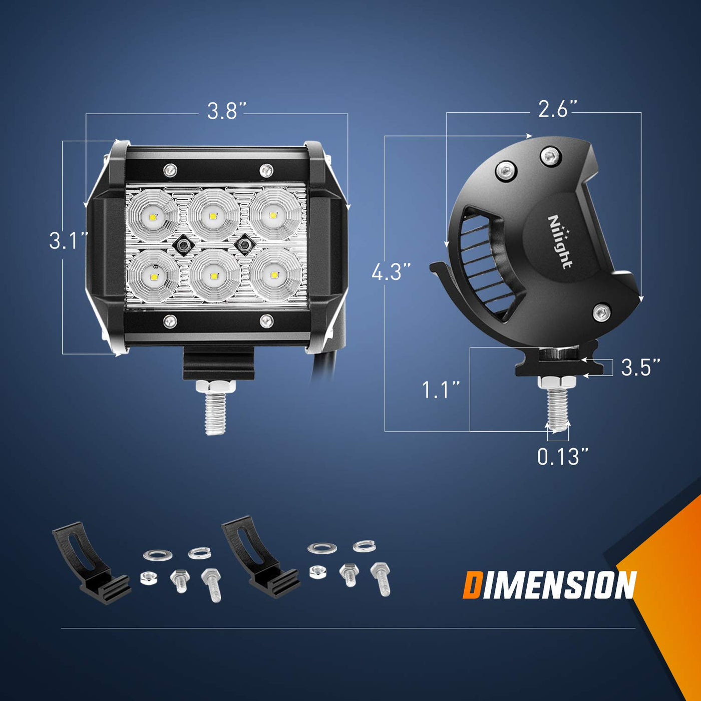 Super-bright, wide illumination range:Quality LED chips emit bright white light for clear visibility. The flood light beam covers a wider light range, allowing you to see clearly in the darkness | Adjustable Mounting Bracket: Offroad light pods' mounting angle can be adjusted to upward or downward approximately 45 degrees, easy to change direction.And mounting brackets are slidable to make mounting position flexible | Easy plug and play: Comes with 12V 5 pin rocker switch TE connector wiring kit, can directly connect with the two 4 inch light pods to make them work,free of wiring labor | Wide range of applications: Suitable for almost all 12V vehicles such as Jeeps,truck, UTV, ATV,SUV, motorcycles,cars, yachts, boats, and trailers,golf cart, snow plower, mower,tractor etc | Package include: 2PCS 18W LED light pods, 1PC 5-pin rocker switch wiring harness kit, 1 pack hardware