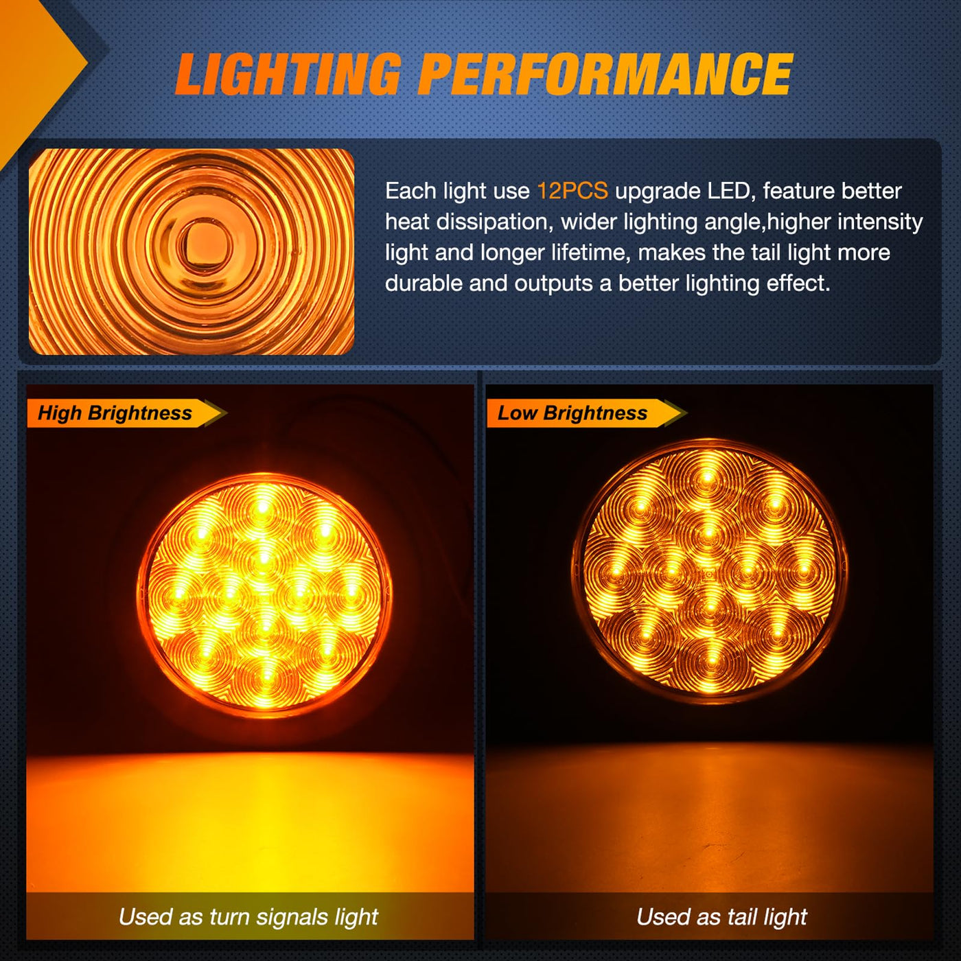 Nilight 4Inch Round Trailer Tail Light With Flush Mount Grommets Plugs W/Mounting Brackets 2Pcs Amber Waterproof Turn Signals Trailer Lights For Rv Truck Trailer