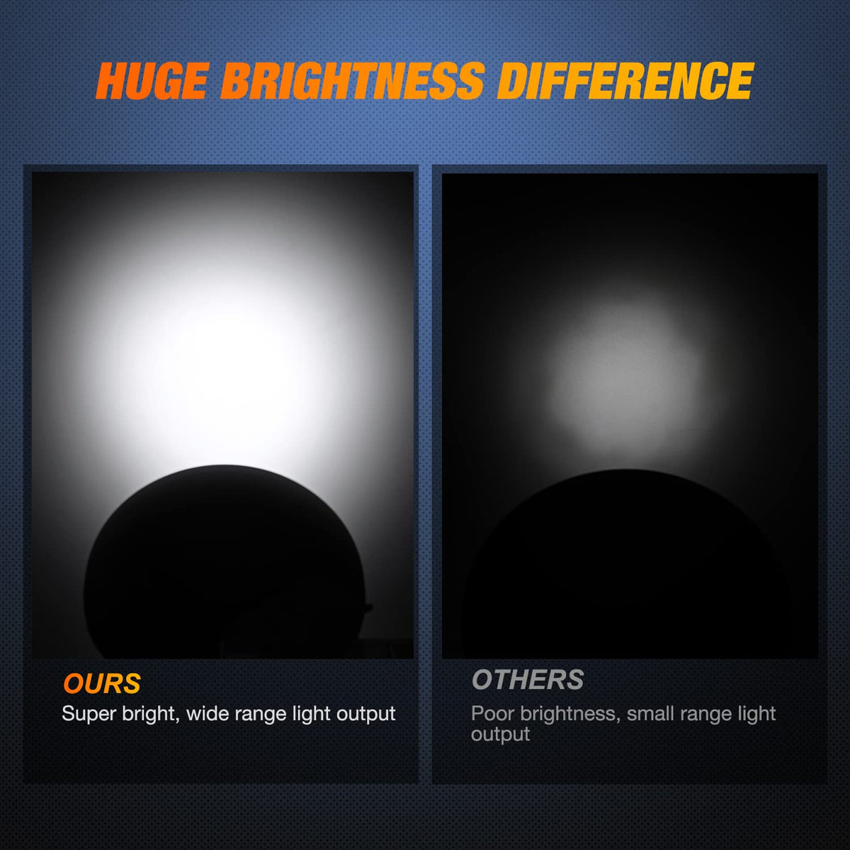 Q: How bright are these LED tail lights compared to others?A: These LED tail lights feature upgraded technology with 12 high-quality LEDs in each light, providing up to three times brighter output compared to standard lights. They offer high brightness for turn, brake, and reverse functions, and low brightness for tail light usage.