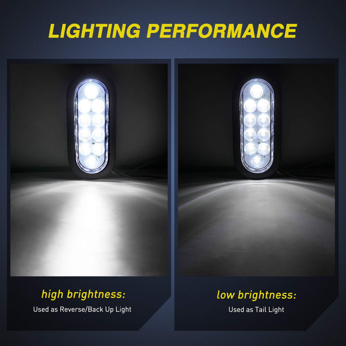Awesome Brightness: Each tail light has 10PCS high-quality SMD LEDs to output super bright red/white light, high brightness for stop/turn/reverse light, low brightness for Tail light, improving visibility and ensuring you a safer night. | Easy Installation: Comes with grommets for surface mount, also added a 3-prong watertight plug with attached wire. For installation, you just need to surface mount the grommets & light setup, and then connect the 3 wires to the corresponding wires on vehicles. Hole size for surface mount is: 6. 6
