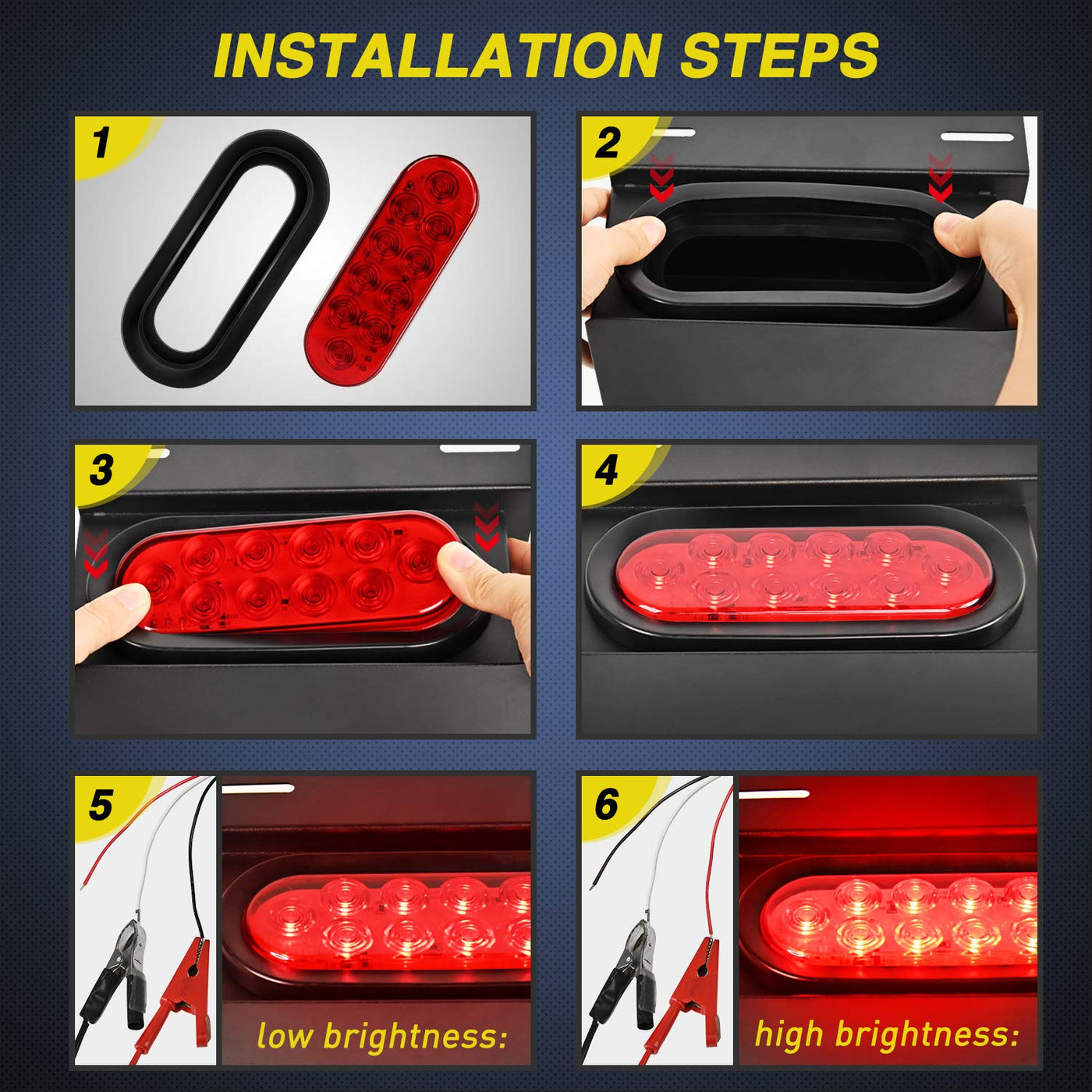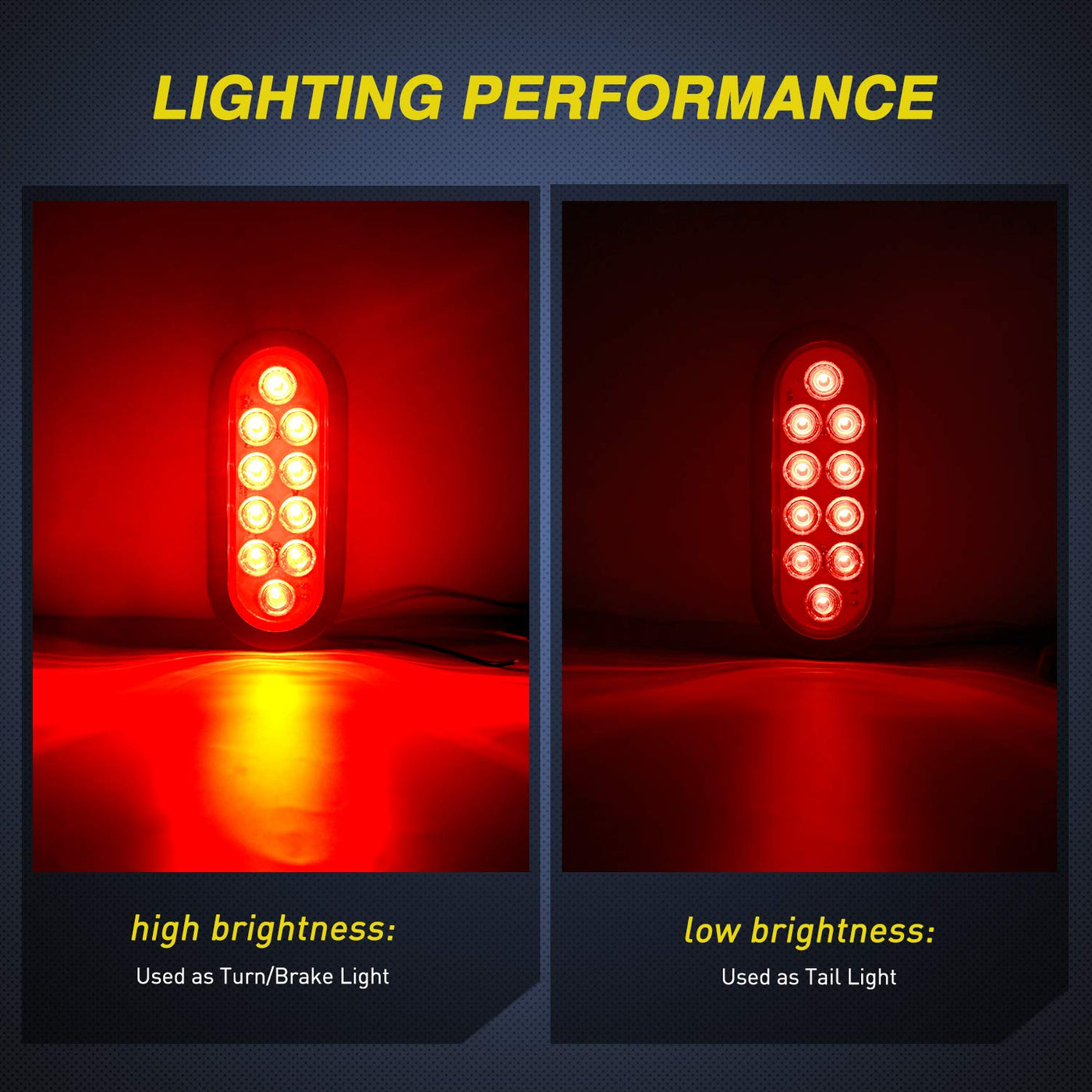 Nilight 4Pcs 6'' Oval Led Trailer Tail Lights 4Pcs 10 Led W/Flush Mount Grommets Plugs Reverse/Back Up Trailer Lights For Rv Tru