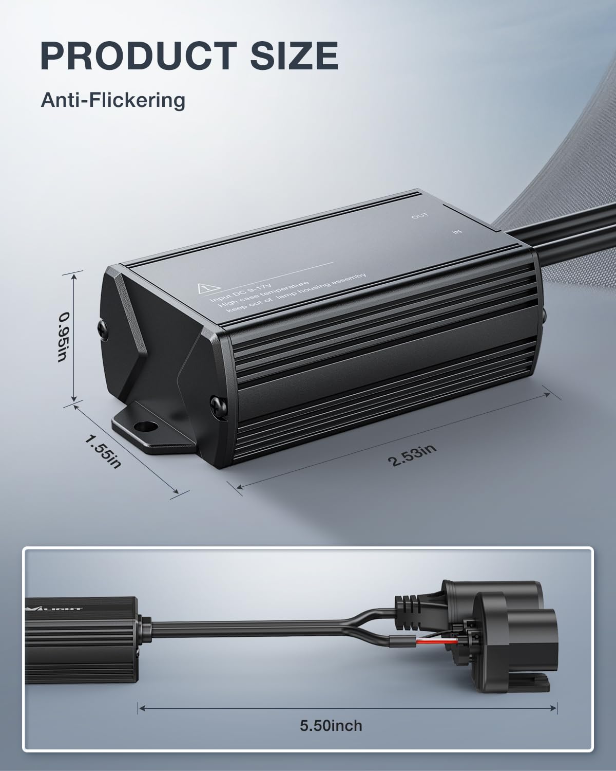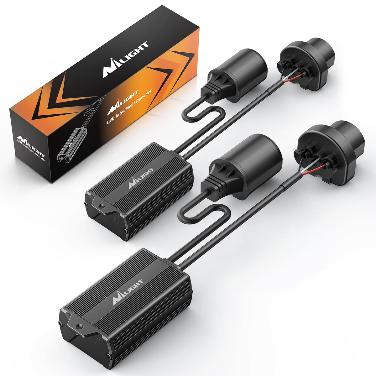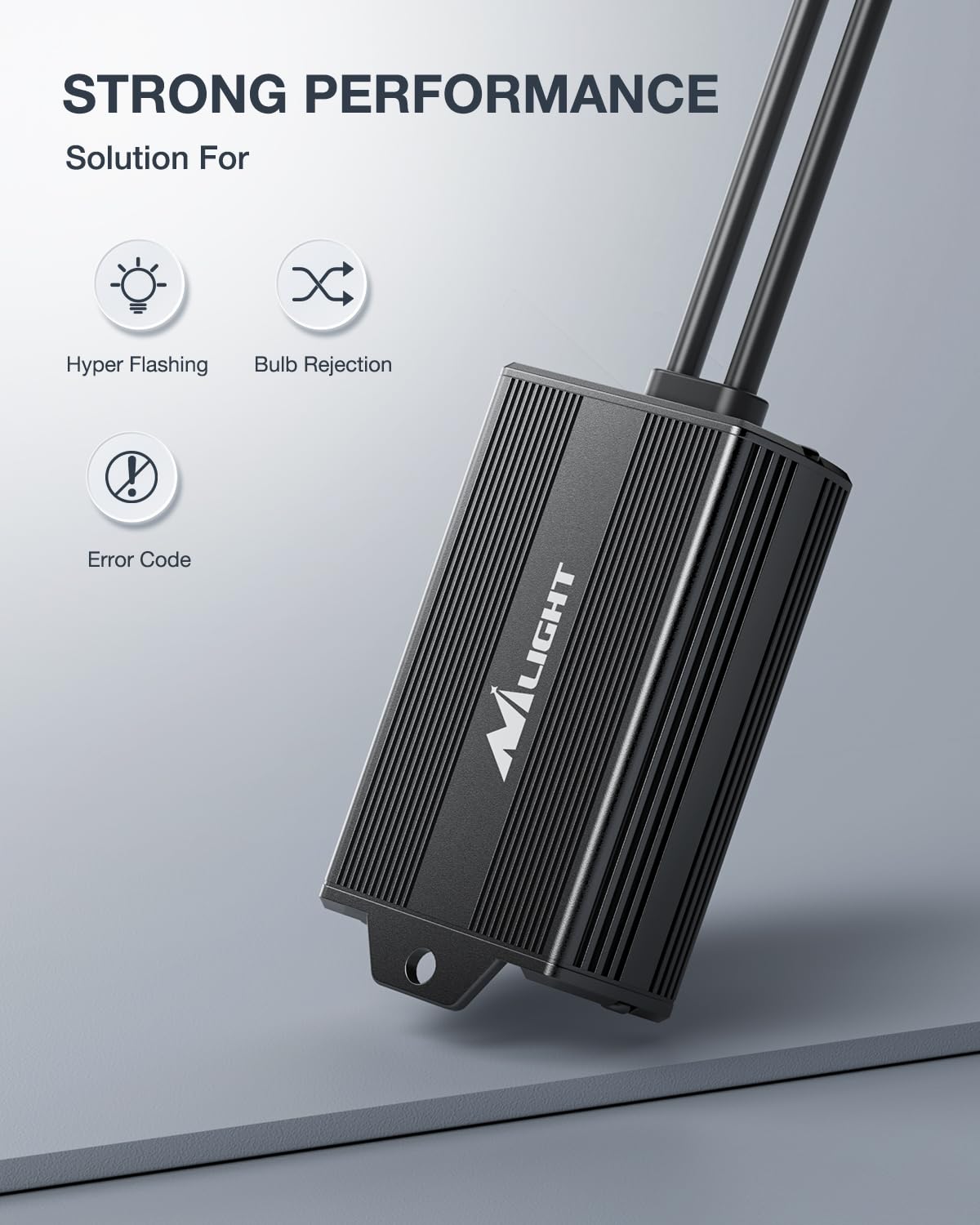 UPGRADE CANbus TYPE: Nilight 9004/HB1 LED CANbus Decoder is upgraded with a resistor and capacitor design to provide a more stable and reliable performance. The aluminum case enhances heat dissipation and safety protection, ensuring a longer lifespan. | Effective Performance: Designed to fix common issues such as flickering, radio interference, lights turning off when engines start, and OBC error messages. Effectively corrects vehicle power issues when upgrading to LED headlight bulbs. | Easy Installation: No modification required, direct replacement and perfect fit, simply installation for LED headlight conversion kit. Plug and Play. | FITMENT: Compatible with 9004/HB1 plug for LED headlight or fog lights. Do not fit HID Headlights. | Buy with confidence: Pack of 2 CANbus decoder for led headlights. Note: the CANbus decoder can work for most vehicles, we cannot guarantee that it will resolve all vehicle issues.