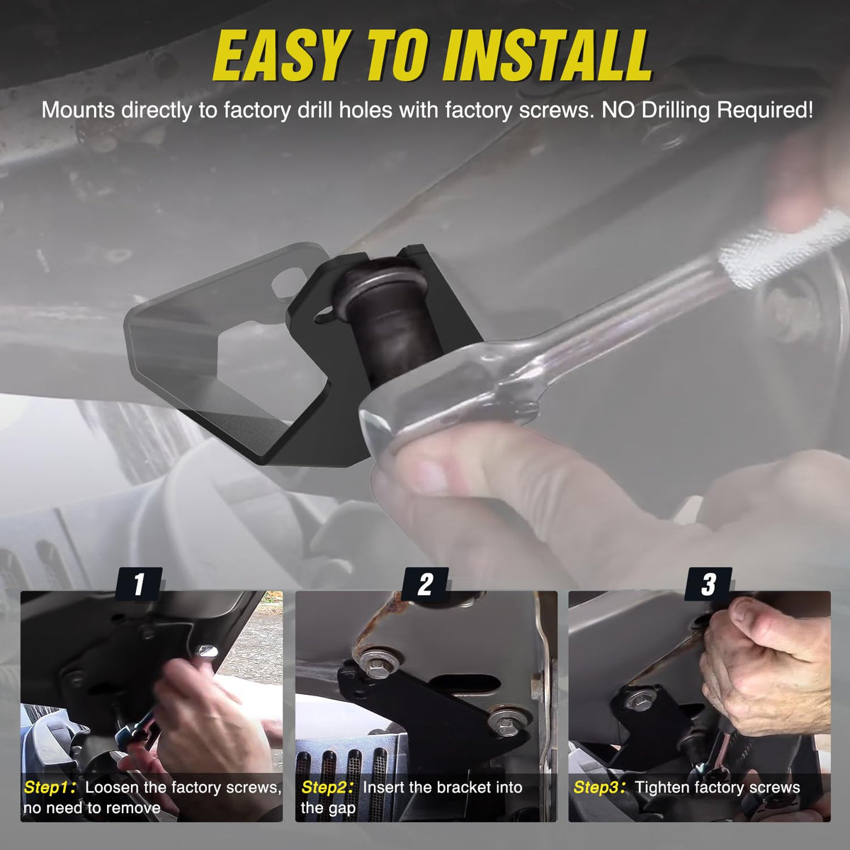 ?Compatible with?Fits for 1999-2006 Chevrolet Silverado, Sierra 1500/1500 HD, 2007 Silverado "Classic", Sierra 1500 "Classic", 1999-2004 Silverado 2500, Sierra 2500, 2001-2006 Silverado 2500HD/3500, Sierra 2500HD/3500, 2000-2006 Tahoe, Suburban 1500/2500, GMC Yukon, Yukon XL 1500/2500 | ?Upgrade & Suitable for More?We thickened the brackets to allow them to bear heavier lights, and enlarged the holes to fit most LED lights from 2inch to 7inch (i.e. suitable for M6, M8, M10 size screws) | ?No Drill?Very easy to install. Just directly install it on both sides factory bolt holes of the engine hood, and use factory screws, no need to drill or cut | ?Excellent quality?Made of thickened solid iron alloy, durable, CNC formed and pressed, precise size, smooth edges, electrophoresis process, covered with thickened black matte powder, durable and non-fading and not easy to scratch | ?Package Include?2pcs mounting brackets