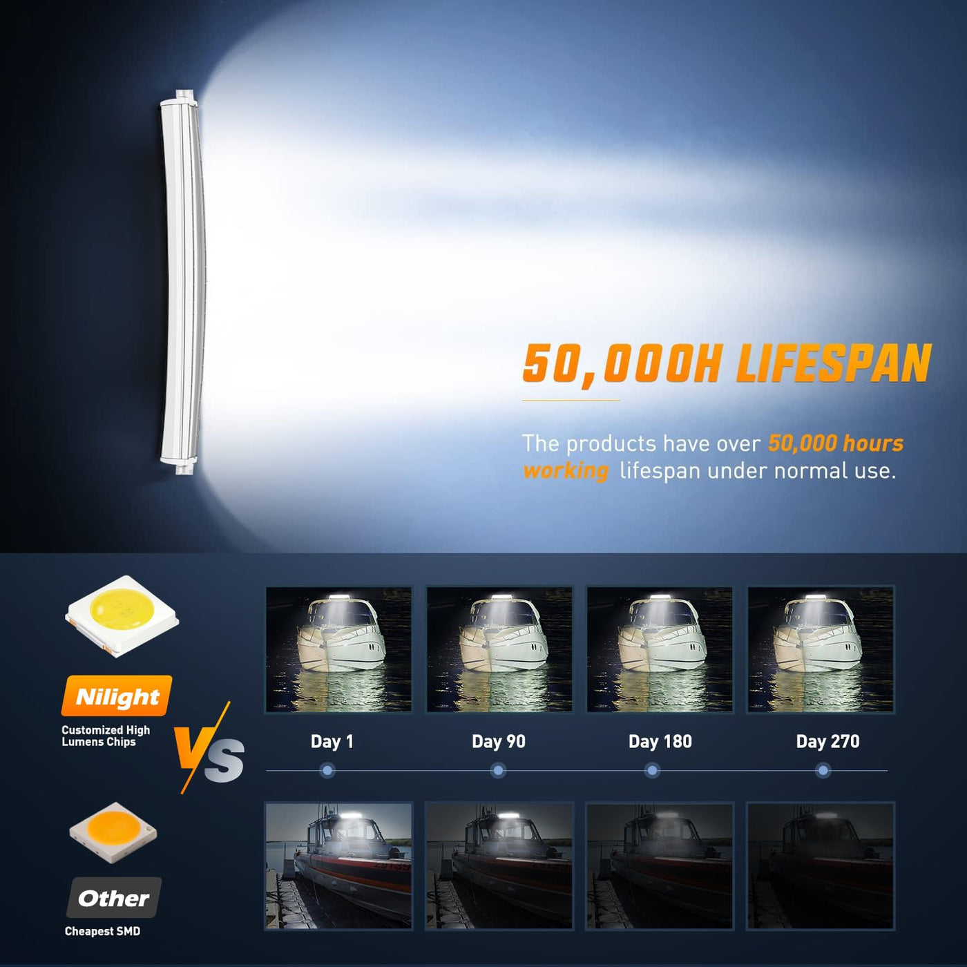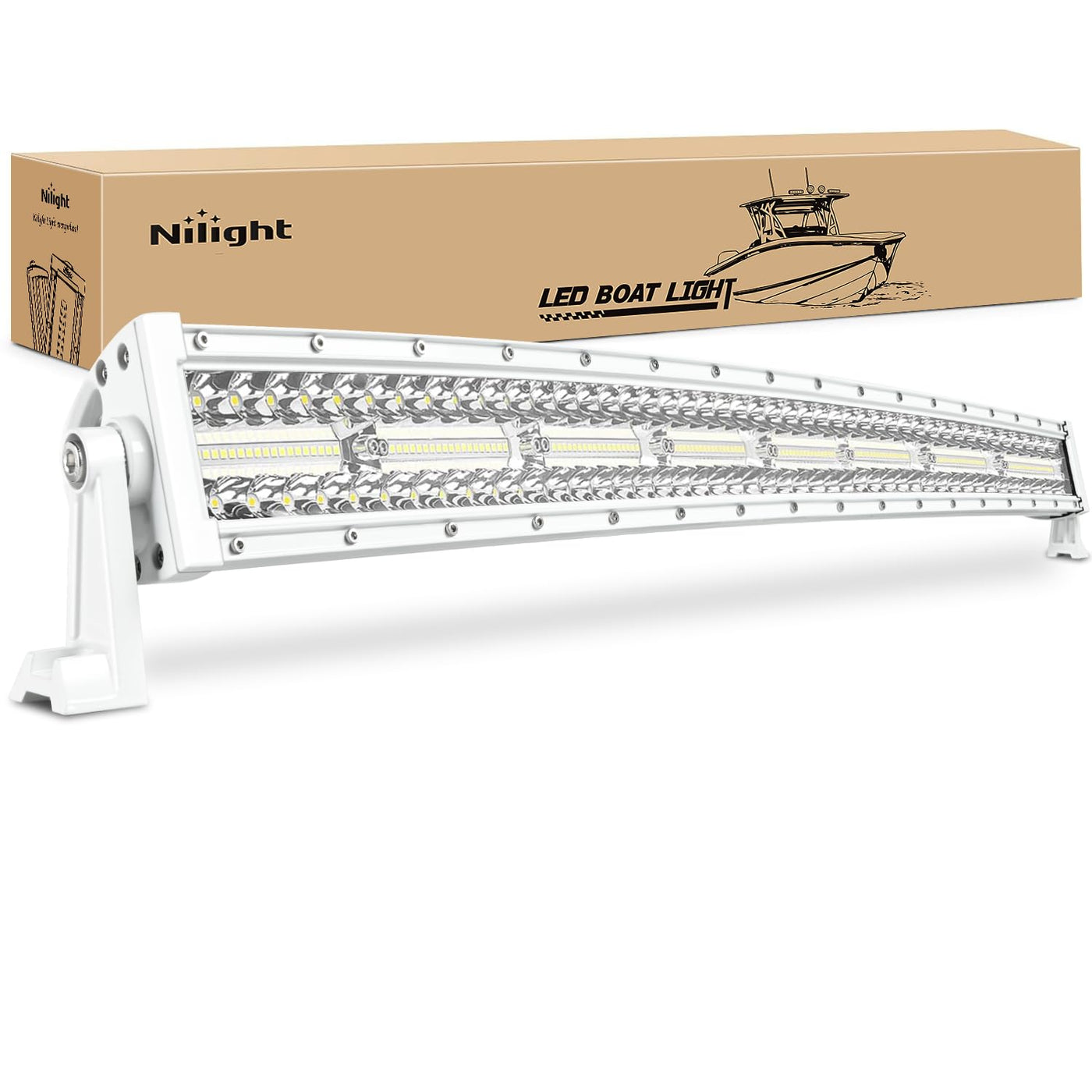 Nilight Marine LED Light Bar Navigation Lights 33 Inch Curved White Spot Flood Combo Ponton Boat Deck Dock Lighting for Night Fi