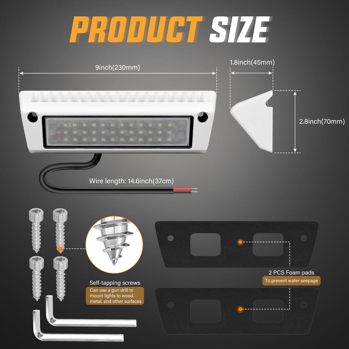 Nilight RV-706WW LED Porch Lights, 9 Inch, White Aluminum Housing, Flood Beam, 12V/24V for RVs, Trailers, Campers, SUV, Truck