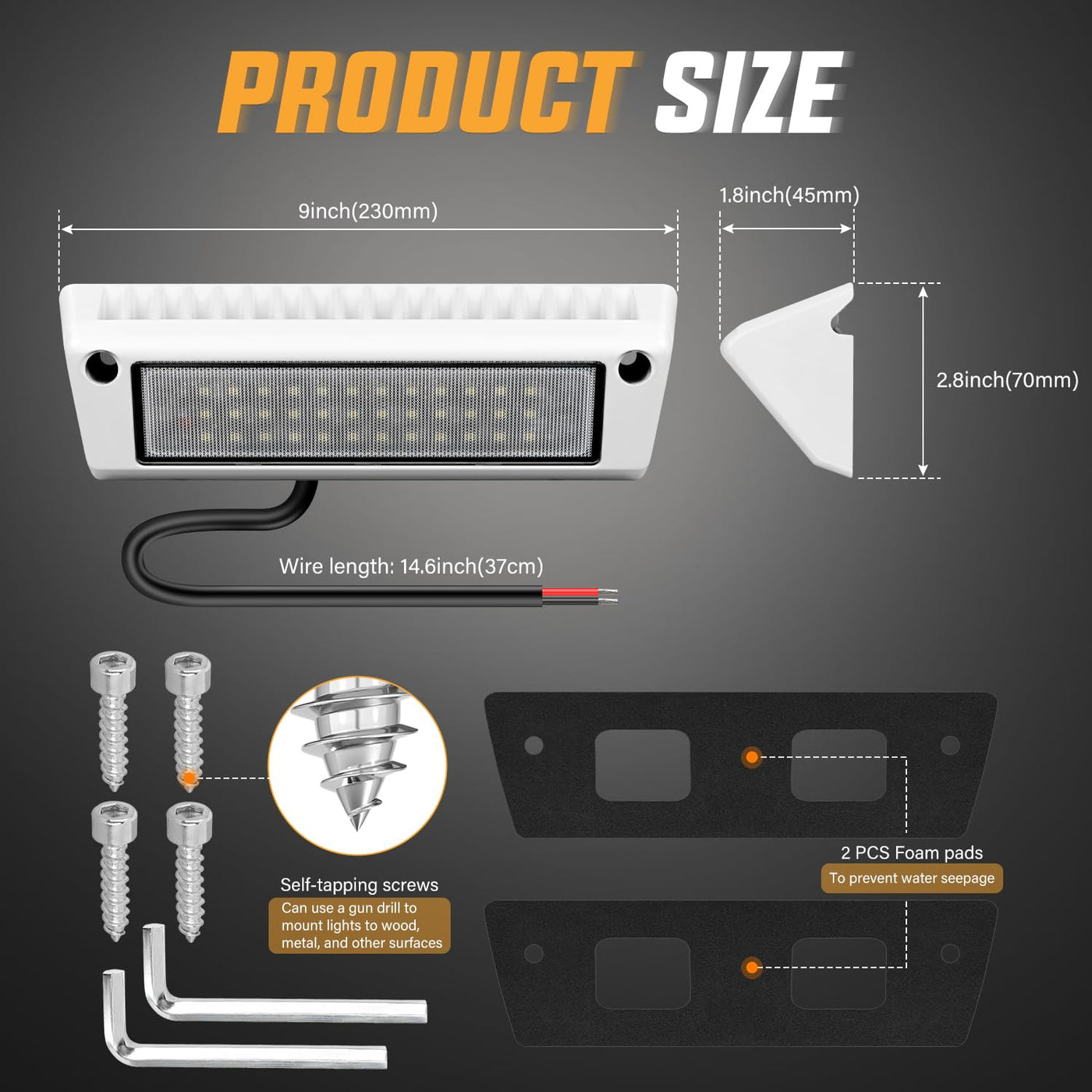 Excellent Lighting Performance: Each light emits bright white light within the 6300-6500K range, utilizing 36 pcs SMD LED chips for optimal illumination.