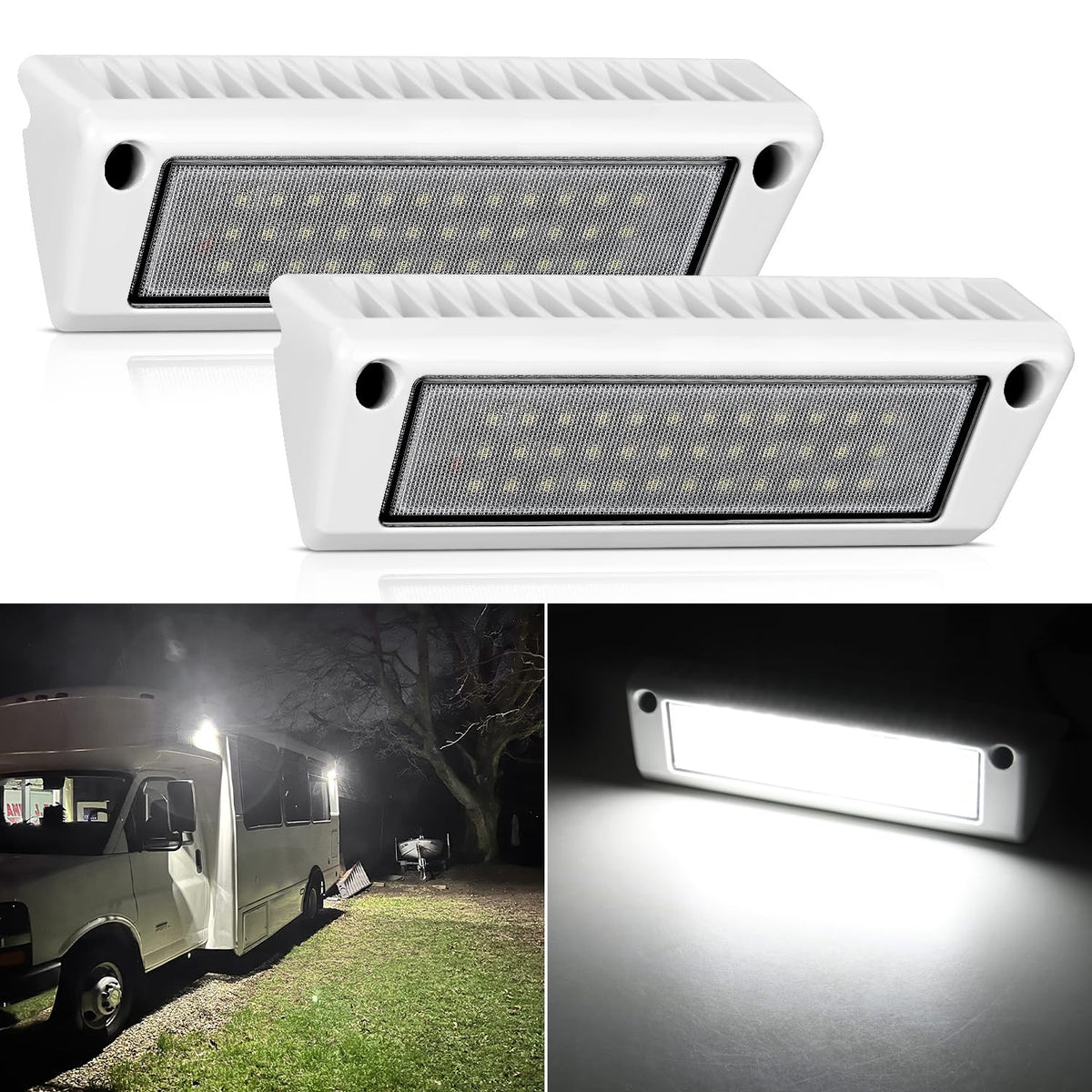 Q: What kind of lighting performance can I expect from the Nilight RV Exterior Light?A: The Nilight RV Exterior Light provides bright white illumination, thanks to its thirty-six SMD LED chips, ensuring excellent visibility while minimizing glare, making it suitable for outdoor activities and camping.