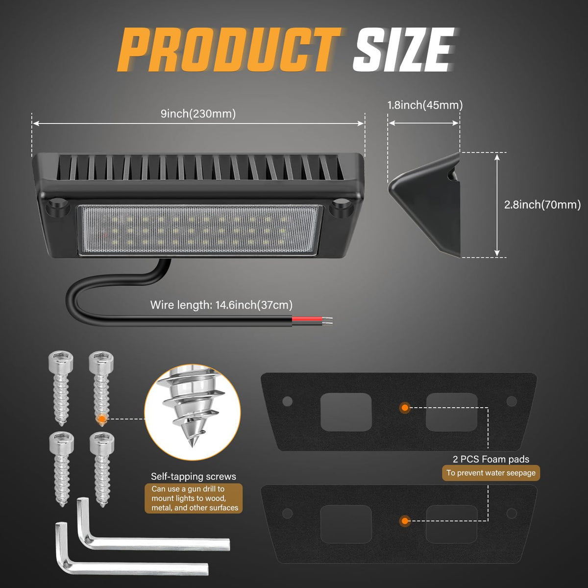 Q: What size are the Nilight RV Exterior Lights?A: The Nilight RV Exterior Lights measure nine inches in length, making them suitable for various mounting applications.