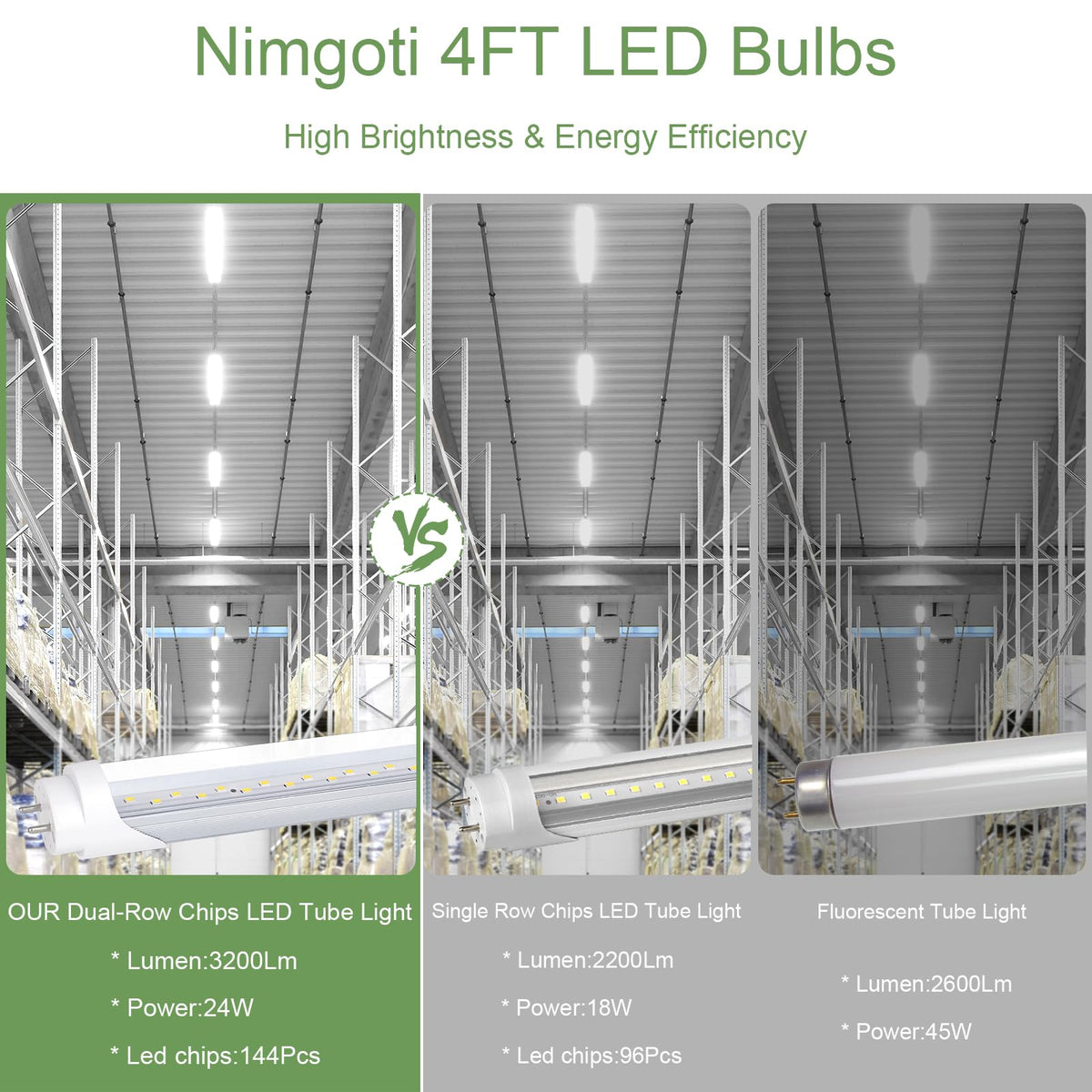 Nimgoti 25-Pack T8 Led Bulbs 4 Foot, 24W 3200Lm 5000K Daylight Tube Lights, Ballast Bypass, Type B, Dual-End Powered, Replacemen
