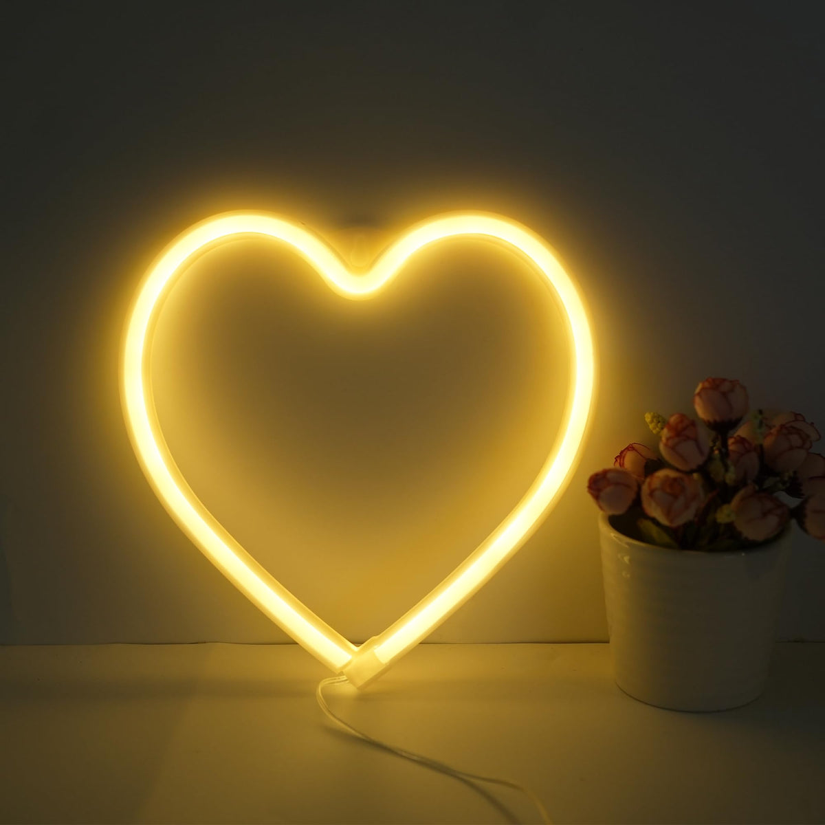 Ninite LIGHTS Heart LED Neon Light, USB/Battery Powered Heart Shaped Neon Sign Lamp, Decorative Night Light for Bedroom, Living