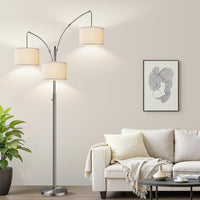 Nintiue Dimmable Floor Lamp - 3 Lights Brushed Nickel Arc Floor Lamps For Living Room,1000Lm Modern Tall Standing Lamp With Whit