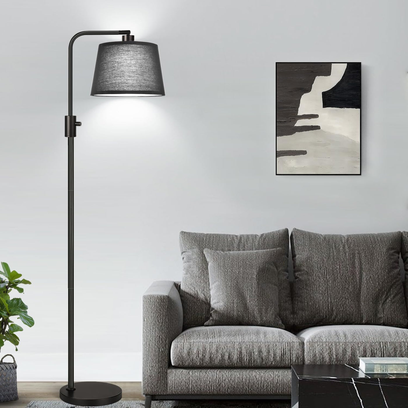 Why Do You Choose Our Modern Dimmable Floor Lamp?1. This Modern Floor Lamps Is Fully Stepless Dimmable Pattern From 0 To 100%, Which Means You Can Rotate The Switch To Set Any Brightness As You Like.2. Our Standing Lamps Are Designed With A 270? Horizontally & 90? Vertically Ratating Head, You Can Screw The Lamp Shade To Any Angle You Like, Which Is Very Proper For Reading And Working. 3. 1000 Lumens Bulbs Included, Perfect For Reading And Studying, Protecting Your Eyes From Flickering Lights. 4. If Your Lamp Has Any Defect Or Stops Working Within 3 Years, We Help You Troubleshoot Or Send A Whole New Product.Qaq1: What Is The Height Of This Floor Lamp?A1: We Have Extend The Height Of The Lamp To 65 Inches, Which Will Make You Never Mind Too Short To Fit.Q2: Can The Led Light Bulb Be Replaced?A2: Yes, You Can Replace The Light Bulb With Dimmable Light Bulbs.Q3: Is This Step-Less Dimmable?A3: Yes, It Supports Fully Dimmable, The Brightness Can Be Adjusted By The Rotary Switch.Q4: How Can I Do If The Lamps Stop Working Or Have Any Problem?A4: If Your Lamp Has Any Defect Or Stops Working Within 3 Years, We Help You Troubleshoot Or Send A Whole New Product.Specifications:Material: Metal + Linenpower Source: Corded-Electriclight Source: Ledwire Length: 5.9 Feetlamp Height: 65 Inchlampshade Dimension: 11.8 X 8 Inchpackage Included:1 X Floor Lamp1 X White Lamp Shade1 X 6W Led Bulb(2700K Warm White)1 X User Manual