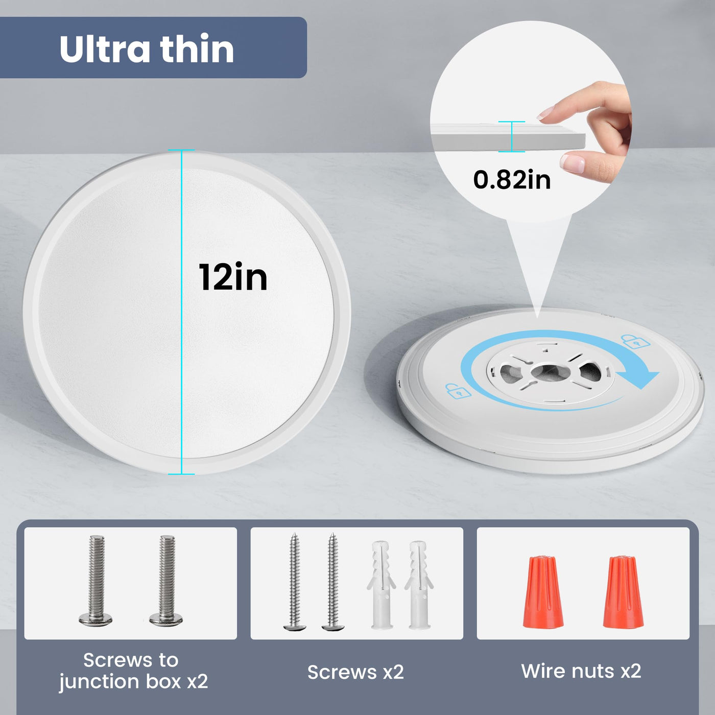 Niorsun 12 Inch 2 Pack Flush Mount Led Ceiling Light Fixture,Dimmable 3000K/3500K/4000K/5000K/6500K Adjustable Ceiling Lights,Ul