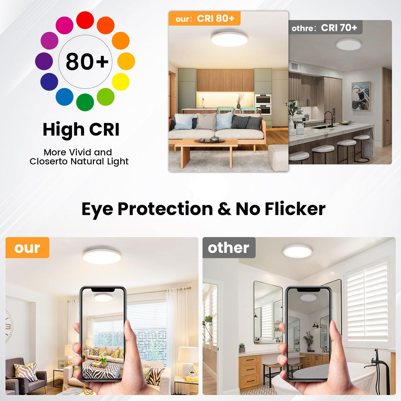 Q: What types of rooms are suitable for the NIORSUN LED ceiling light?A: The ultra-thin design and versatile lighting options make this ceiling light ideal for various spaces, including kitchens, hallways, bedrooms, closets, and other low-ceiling areas.