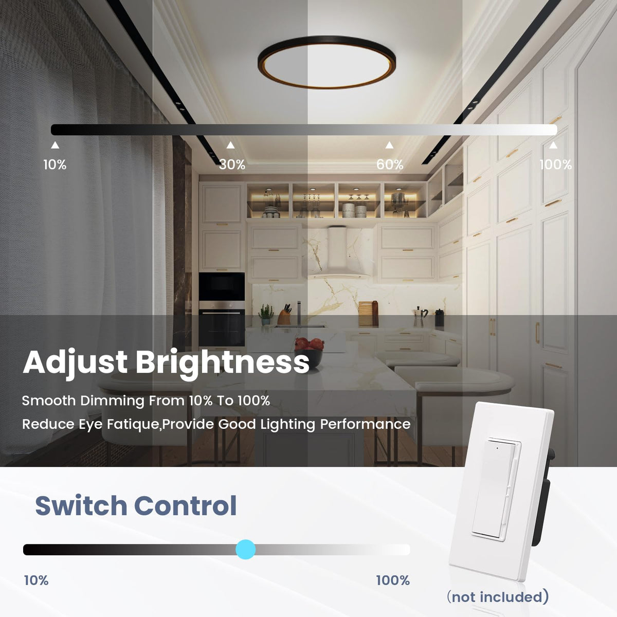 Niorsun 7 Inch Led Flush Mount Ceiling Light, 5Cct Dimmable, 15W Bathroom Light, Flat Low Profile For Hallway Bedroom, 1 Pack Bl