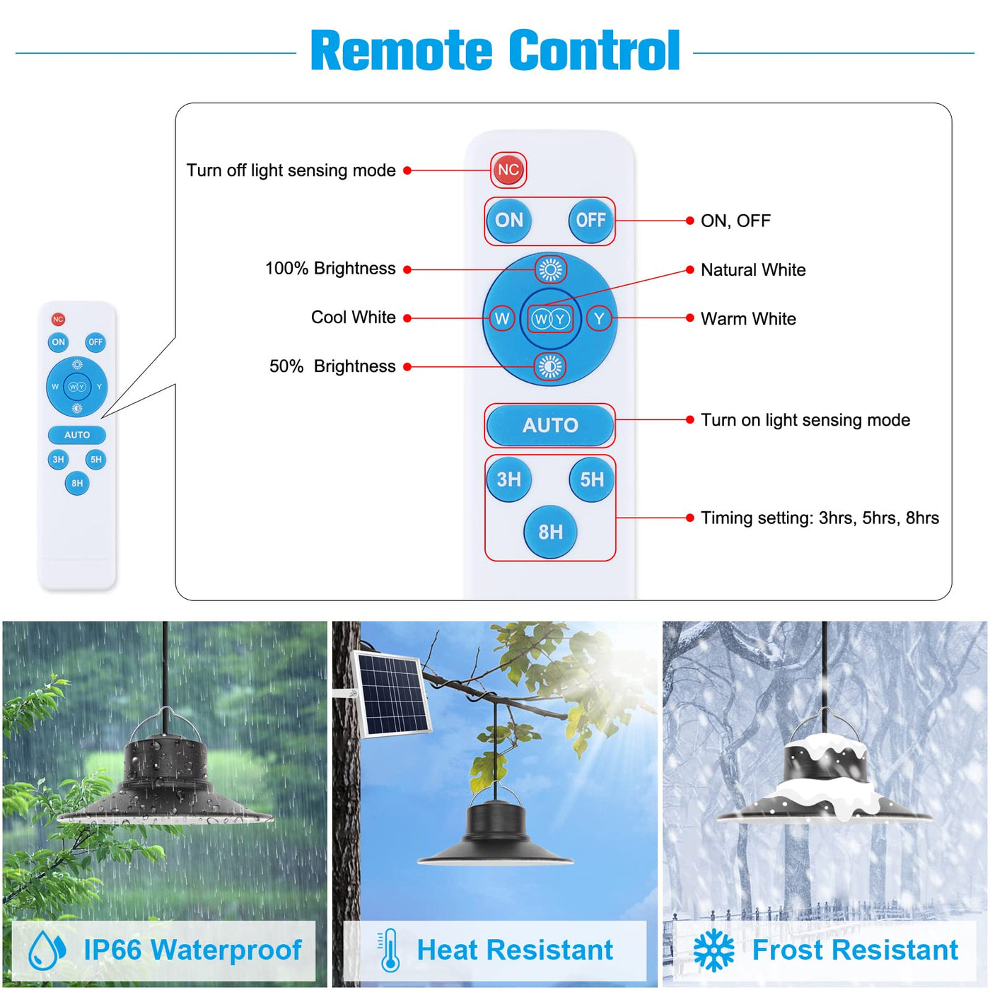 Niorsun Solar Lights Outdoor, Dimmable Led Pendant Light With Remote, Ip66 Waterproof, 16.4Ft Cable