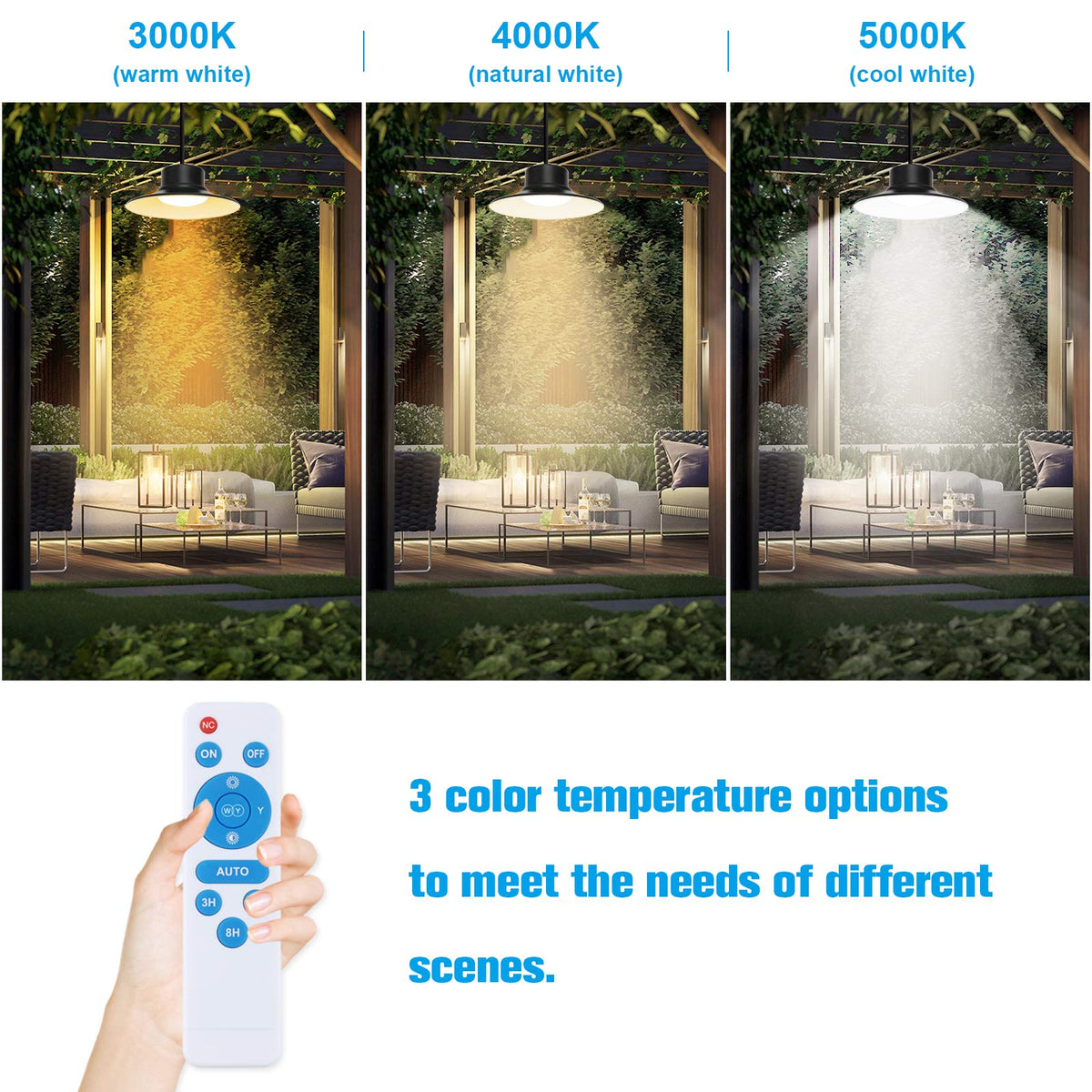 Q: What are the color temperature options for the NIORSUN Solar Pendant Light?A: The NIORSUN Solar Pendant Light offers three color temperature options: 3000K (Warm White), 4000K (Natural White), and 5000K (Cool White), allowing you to choose the perfect ambiance for your space.