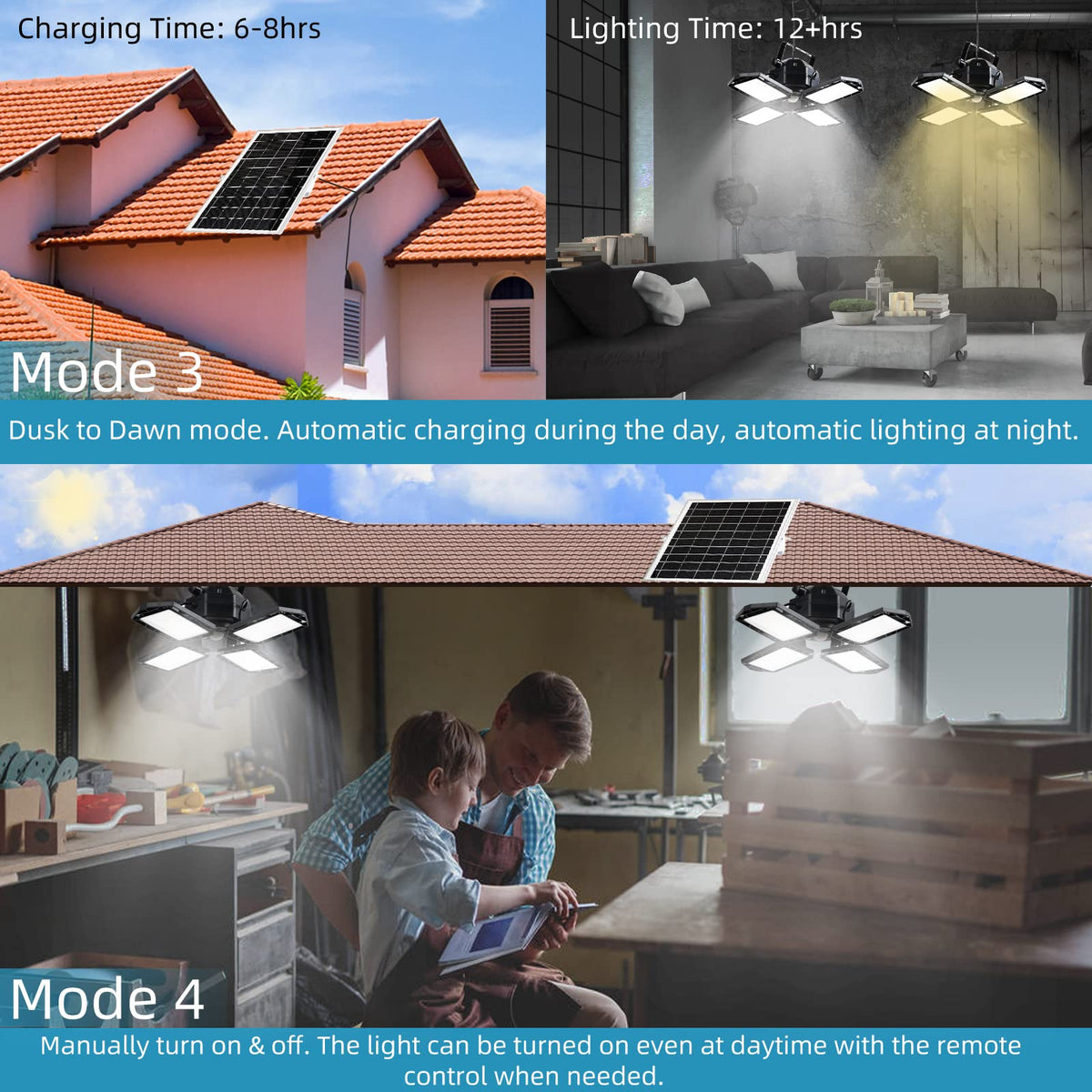 - **Remote Control Convenience**: Easily manage the lighting with the included remote control, which allows you to adjust brightness levels (50%/100%) and switch between modes effortlessly. An extra ON/OFF switch on the light provides added convenience for immediate control.
