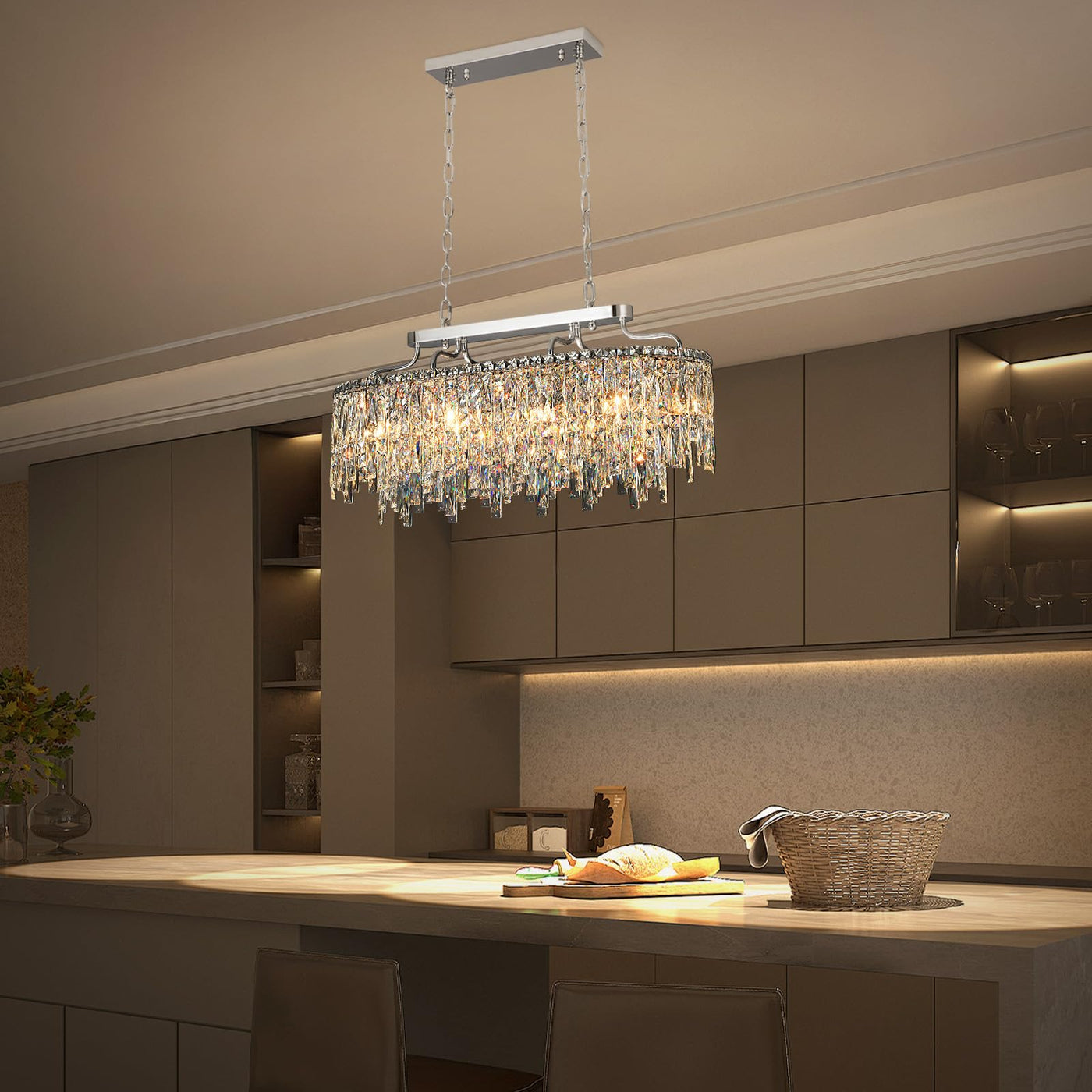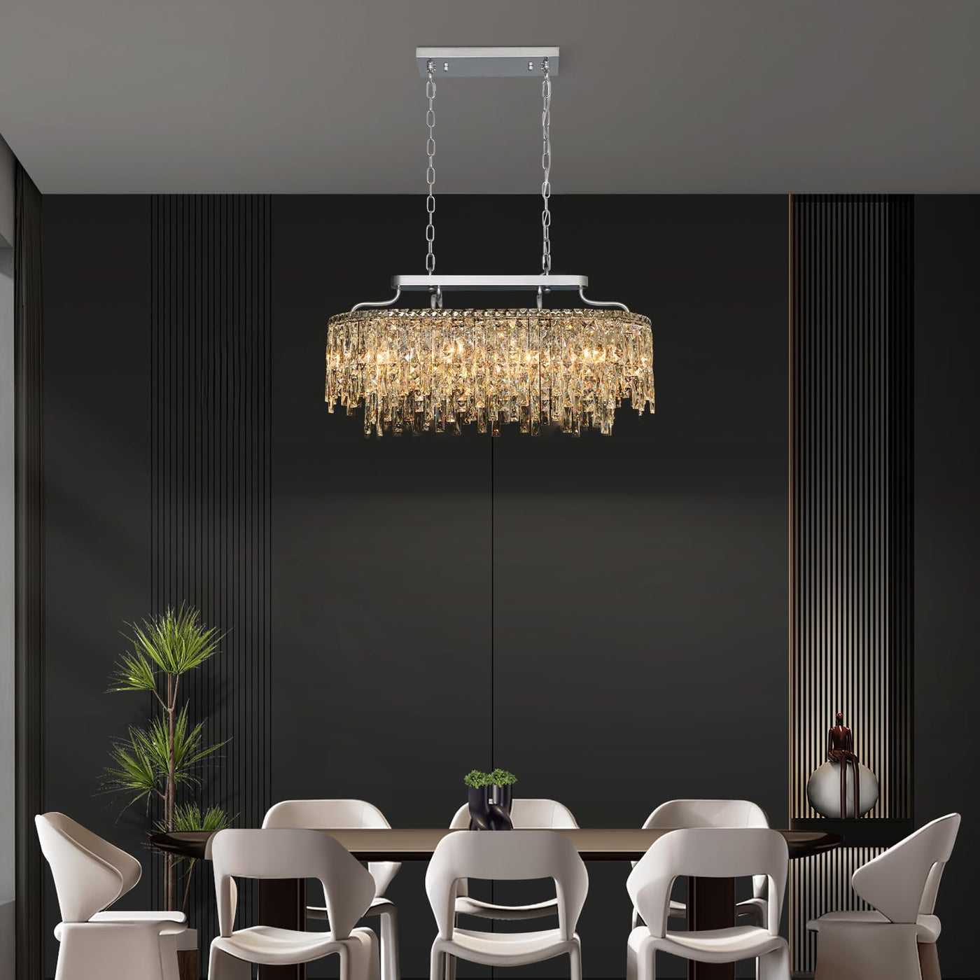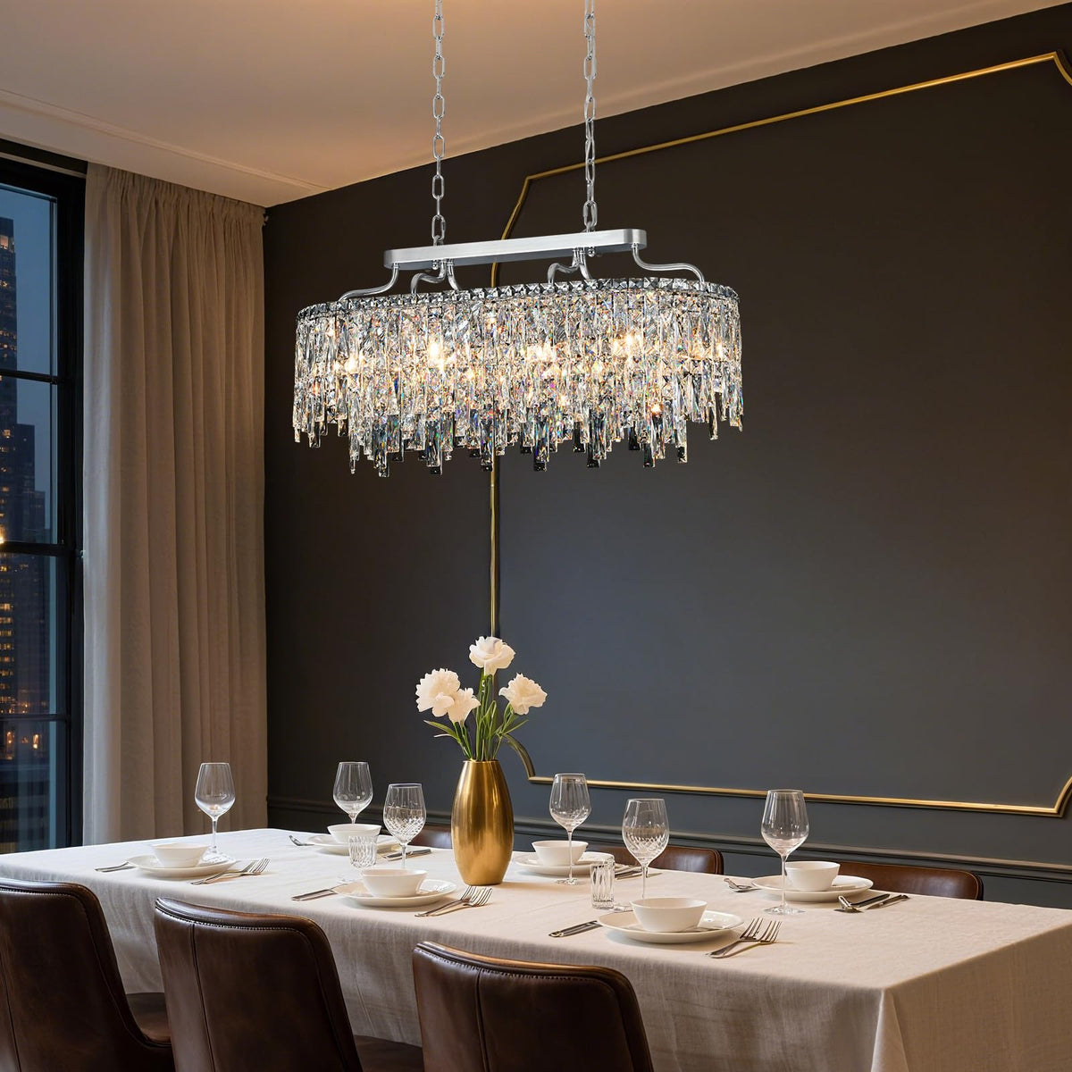 Nisidun 10 Light Crystal Chandelier | Chrome Oval-Shaped Crystal Chandeliers For Dining Room Light Fixture 32 Modern Ceiling Lighting Fixture For Dining Room Kitchen Island Bar