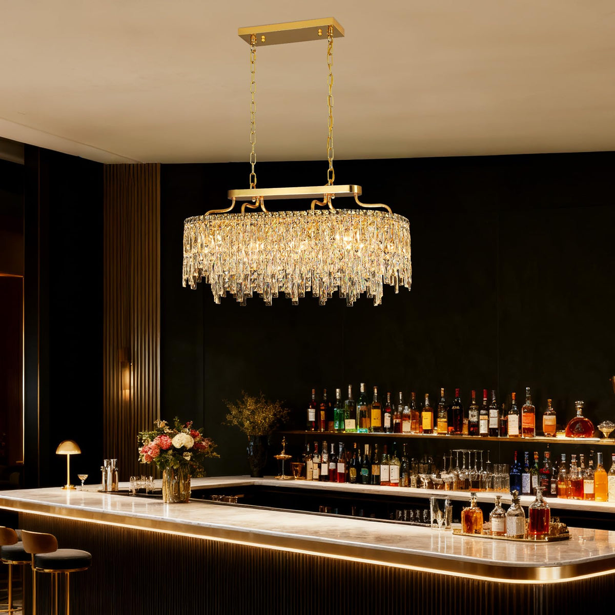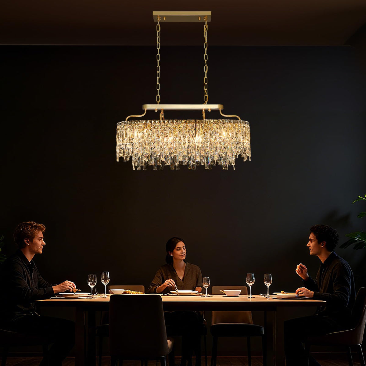 Nisidun Gold Crystal Chandelier | Modern stylish Oval-Shaped Chandeliers For Dining Room Light Fixture 32 10-Light Crystal Ceiling Lighting Fixture For Dining Room Kitchen Island Bar