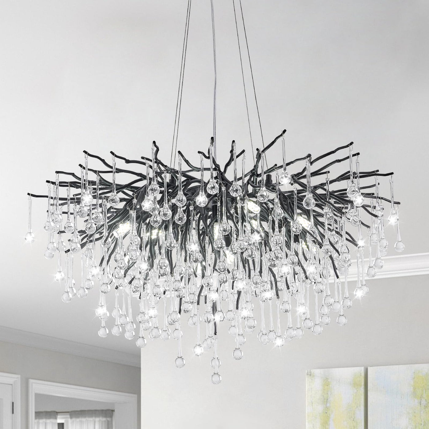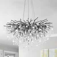 Niuzdu Chandeliers For Dining Room - 31.5'' Modern Black Crystal Chandelier, Round Tree Branch Raindrop Chandelier, Foyer Chande