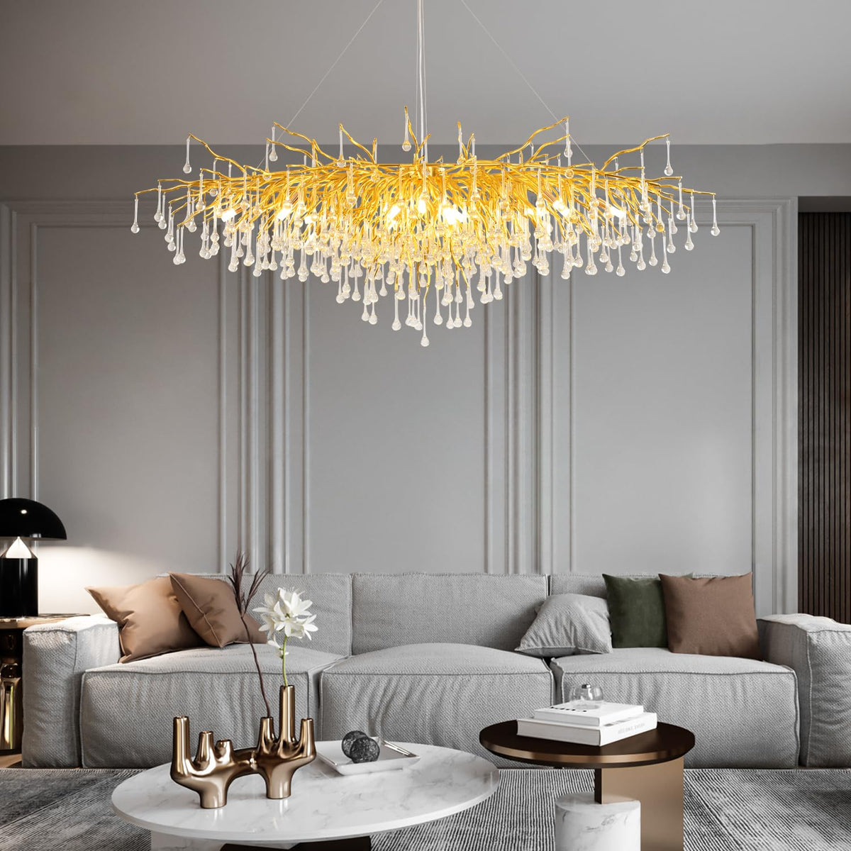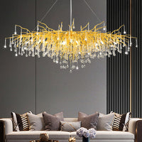 Niuzdu Crystal Chandelier For Dining Room - Modern Farmhouse Crystal Gold Chandelier, Raindrop Tree Branch Chandeliers For Livin