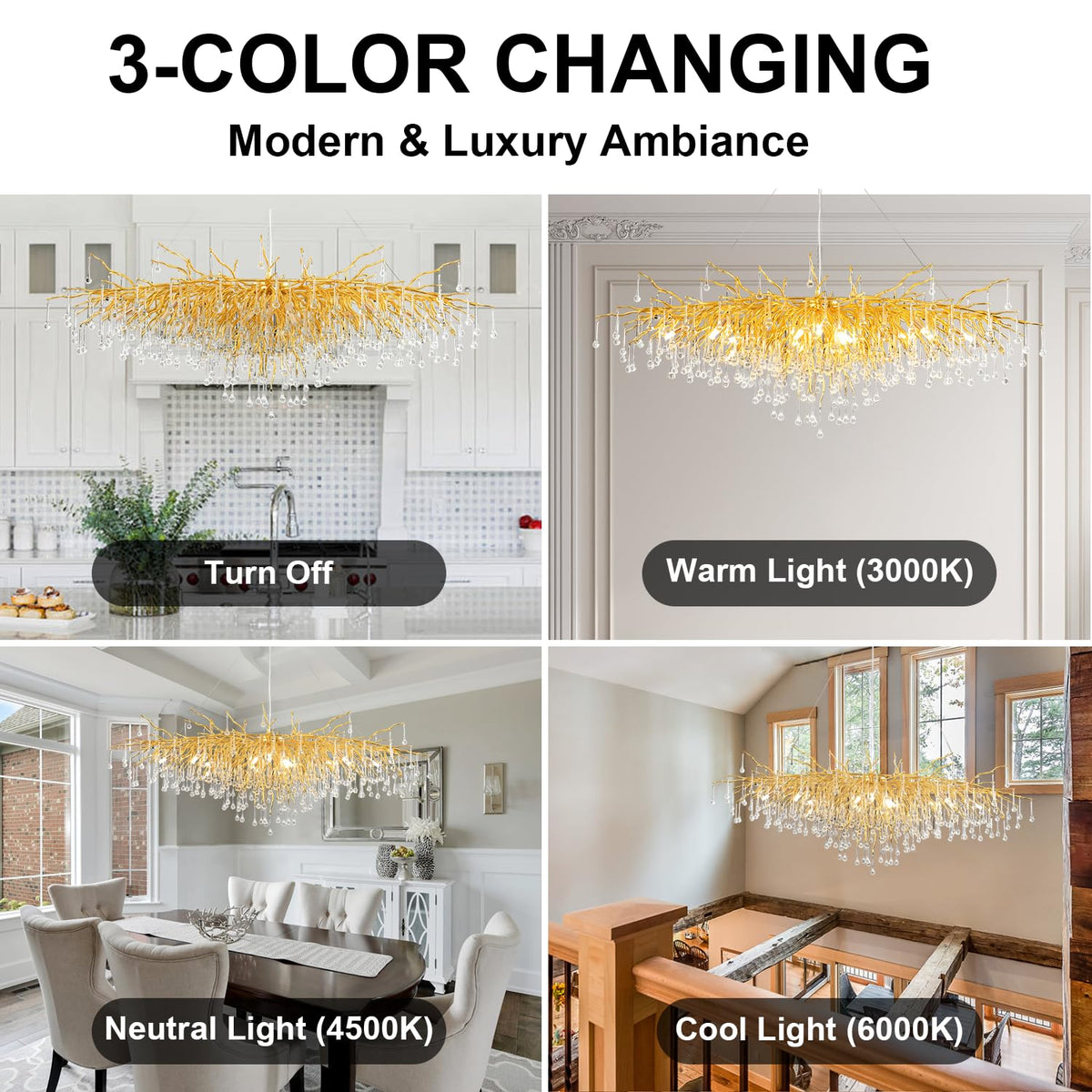 ?Unique Design?This raindrop chandelier is inspired by the shape of a branch. The crystal raindrops hang on the beautifully arranged branches, which are vivid, making you feel like you are in nature and purifying your soul. | ?Funny DIY?This crystal chandelier has a personalized design. The height of lamp branches and lamp chains can be adjusted at will. You can DIY according to your personal needs, personally participate in the design and assembly process, and feel the fun of DIY. | ?Material and Craft?The size of this dining room chandelier is 70.86