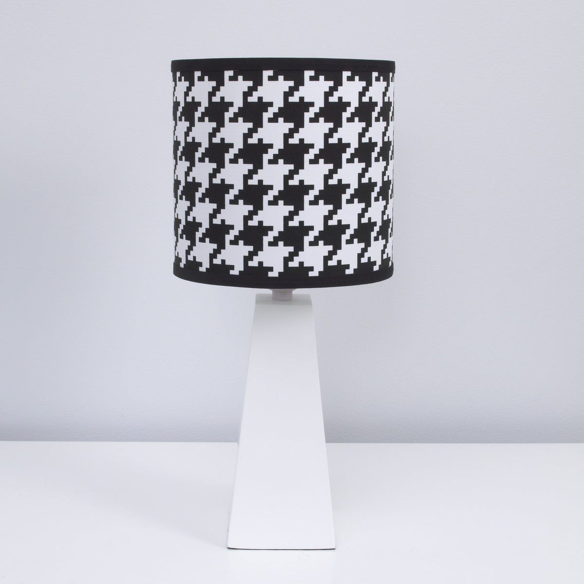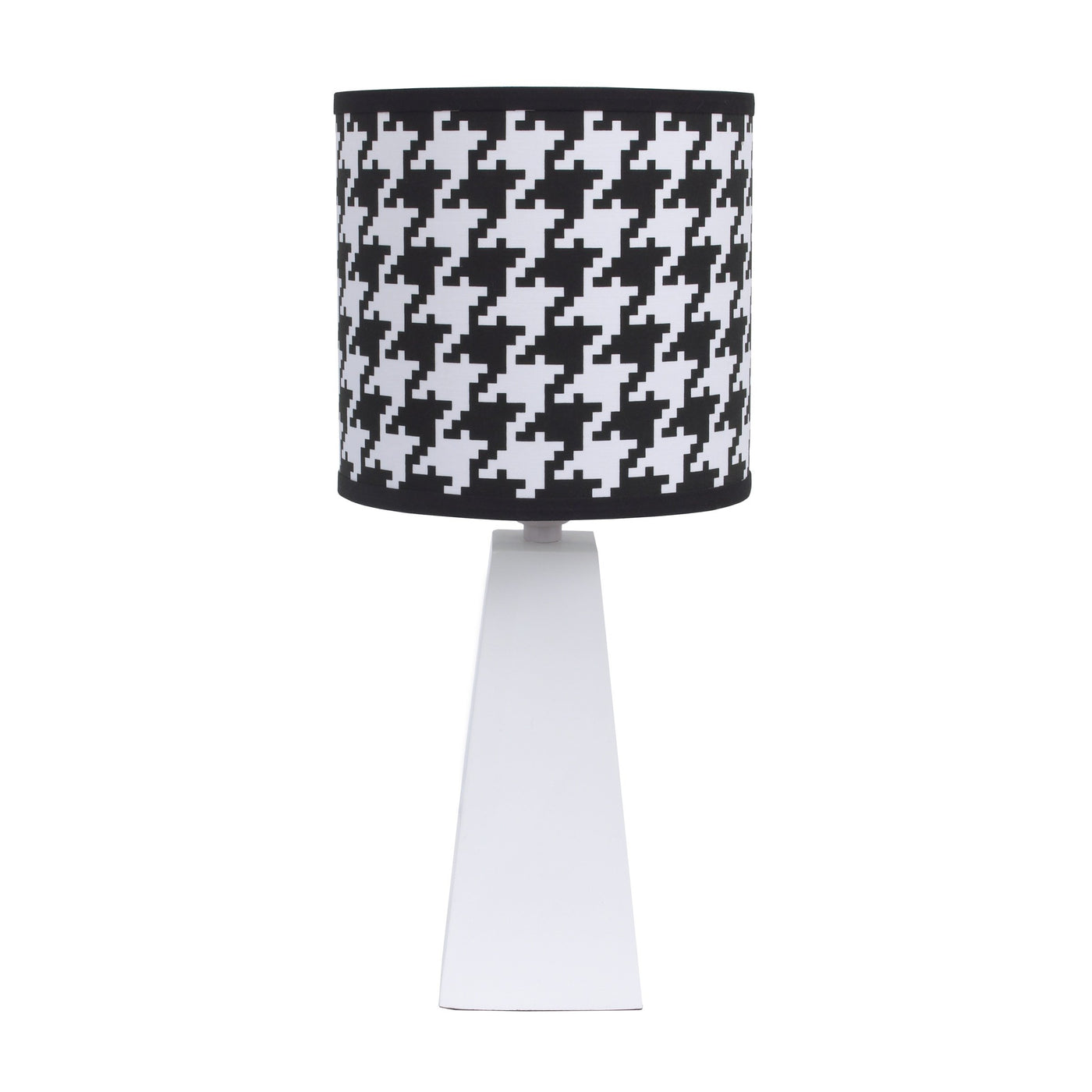 NoJo - Roar - Lamp & Shade. Shine some light on your sophisticated style with the NoJo - Roar Lamp and Shade! A bold, black and white, Hounds tooth-patterned shade with black trimmed edge that sits atop a 17 white, resin base and adds a touch of modern elegance to any space. This lamp and shade coordinates with the full line of NoJo - Roar nursery crib bedding and decor. NoJo - Only The Best For Baby!