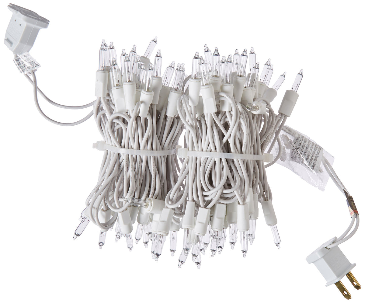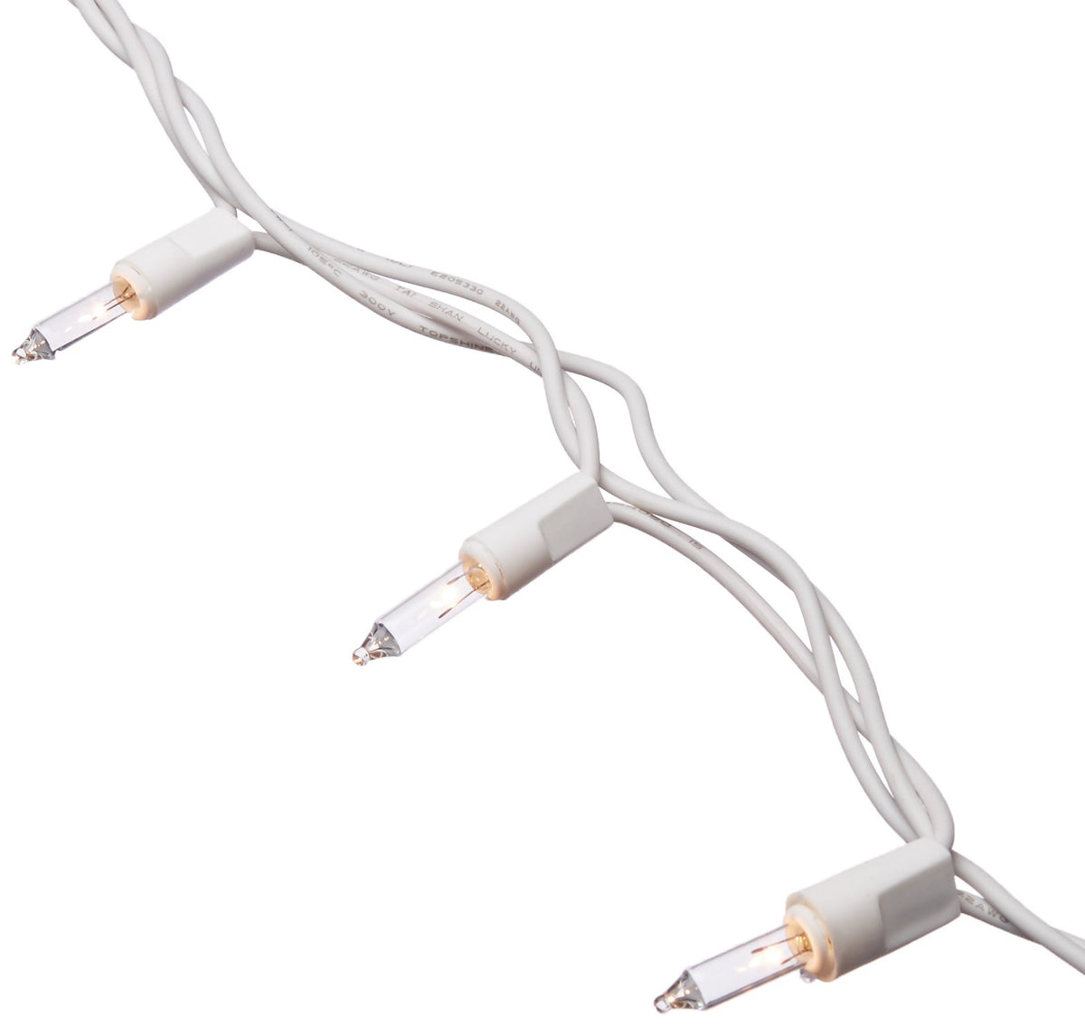 Holiday Wonderland, 100 count, clear, string to string light set, 12 inch lead wire, 2.75 inch spacing, 4 inch end for indoor & outdoor use, white wire, 22.7' lighted length, 24' TOTAL length, replacement fuses are 2F/2R/1, 5 sets of lights can be connected together, comes with 2 flasher bulbs, 2 extra regular bulbs & 1 replacement fuse, replacement bulb use 1115-2-88, TV #513-687.The product is manufactured in china. The product is highly durable.