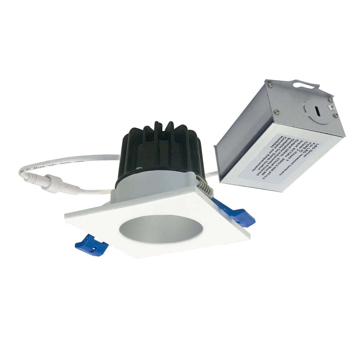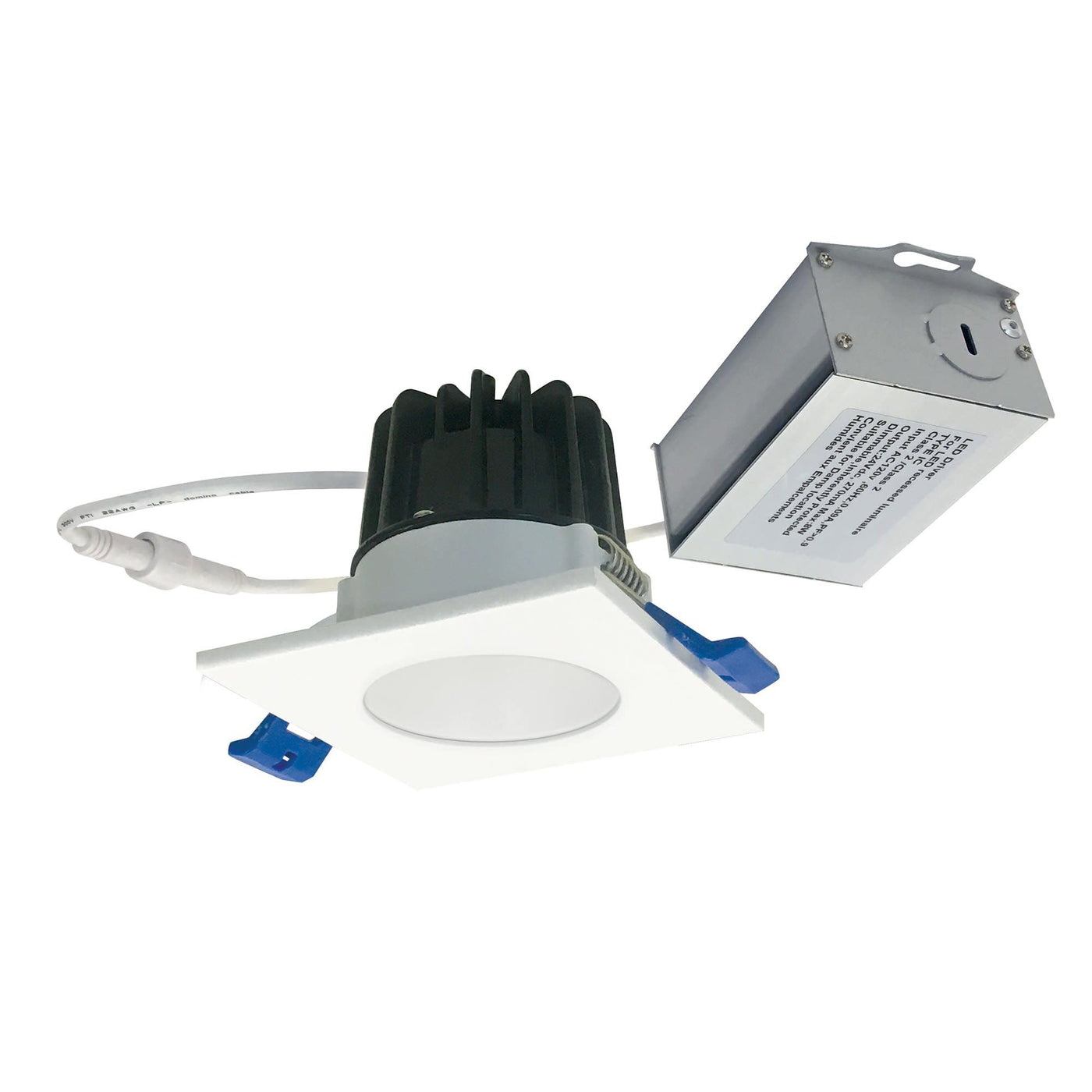 2'' M2 Can-less LED downlights features and convenience for easy installation in new construction or remodel applications, no housing is required. Luminaires include a junction box with a quick connect that allows for easy disconnect and mounting in the ceiling. Trim can be changed with optional accessories. Features: Housing is designed for use with remodels or new construction Insulated ceiling rated Constructed from metal Integrated LED lighting Rated for installation in wet locations Energy Star certified Dimensions: Height: 2-3/4'' Width: 3-1/4'' Depth: 2-3/4'' Trim Size: 3'' Electrical Specifications: Wattage: 8 watts Number of Light Source(s): 1 Lumens: 600 Color Temperature: 3000K Color Rendering Index: 90 CRI
