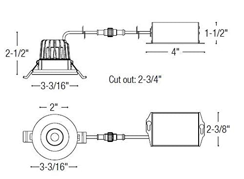 2'' M2 Can-less LED downlights features and convenience for easy installation in new construction or remodel applications, no housing is required. Luminaires include a junction box with a quick connect that allows for easy disconnect and mounting in the ceiling. Trim can be changed with optional accessories. Features: Housing is designed for use with remodels or new construction Insulated ceiling rated Constructed from metal Integrated LED lighting Rated for installation in wet locations Energy Star certified Dimensions: Height: 2-3/4'' Width: 3-1/4'' Depth: 2-3/4'' Trim Size: 3'' Electrical Specifications: Wattage: 8 watts Number of Light Source(s): 1 Lumens: 600 Color Temperature: 3000K Color Rendering Index: 90 CRI
