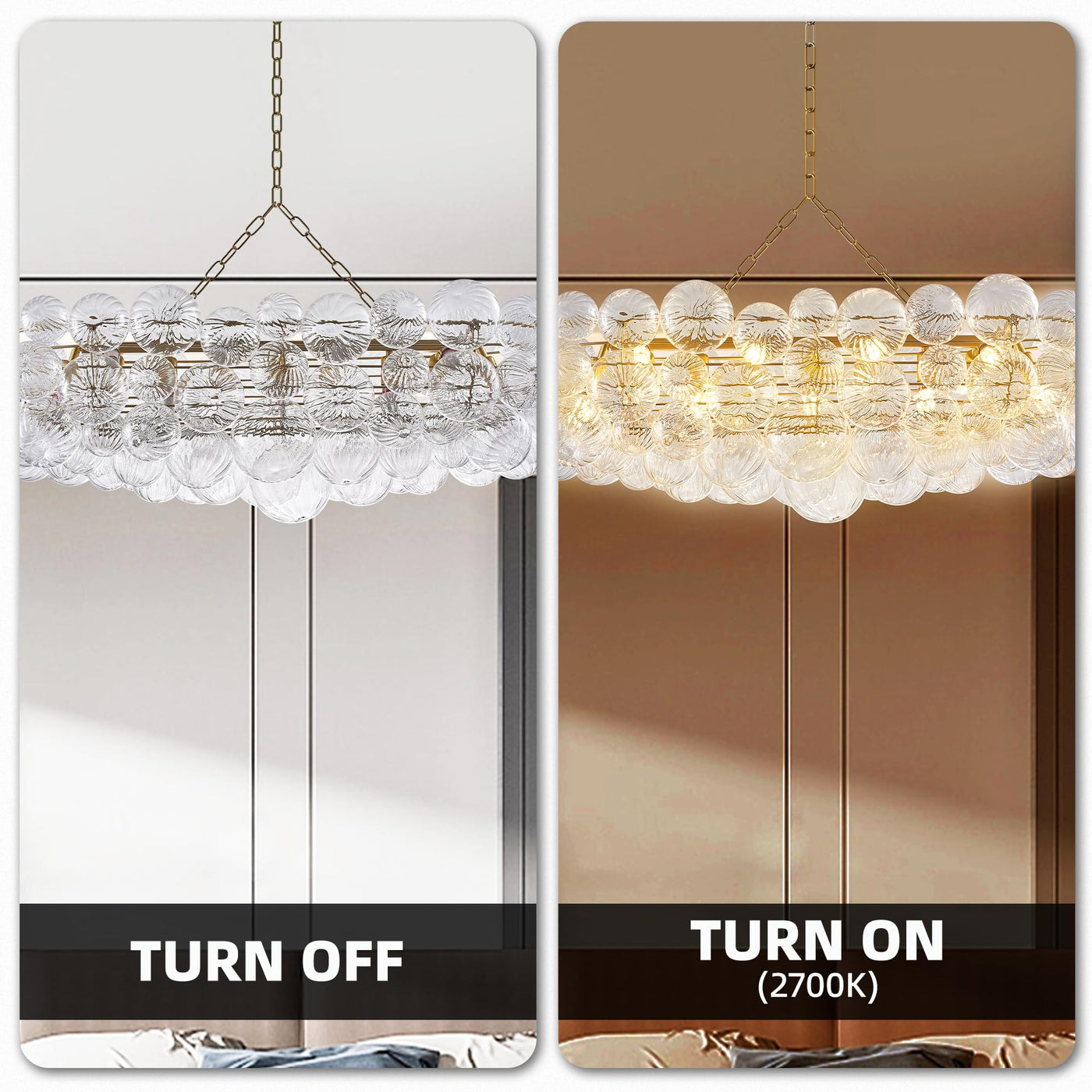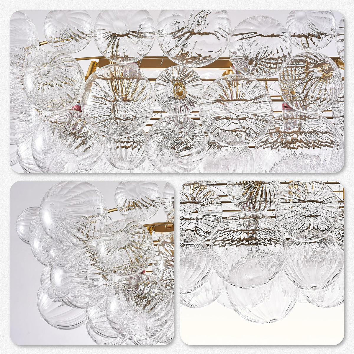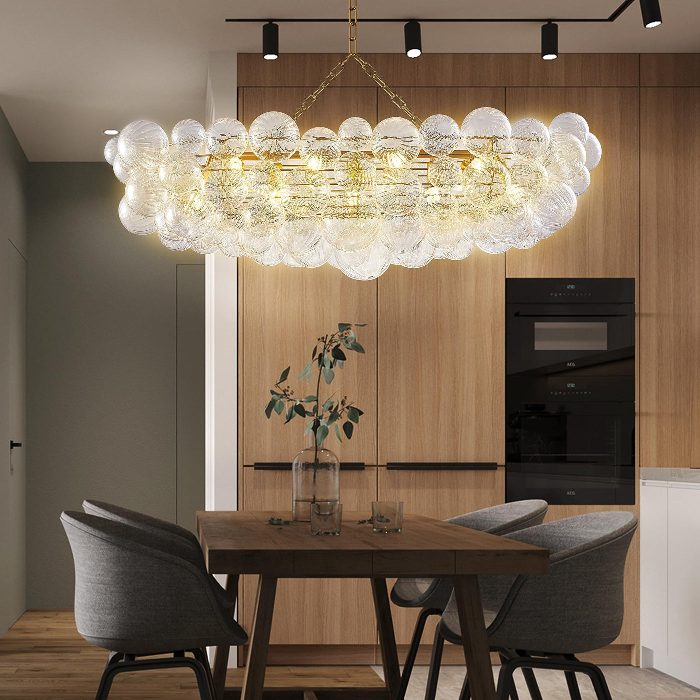 Nordic Bubble Ball Swirled Glass Chandelier, 36'' Long Gold And Clear Blown Glass Large Pendant Light Fixture For Bedroom Study