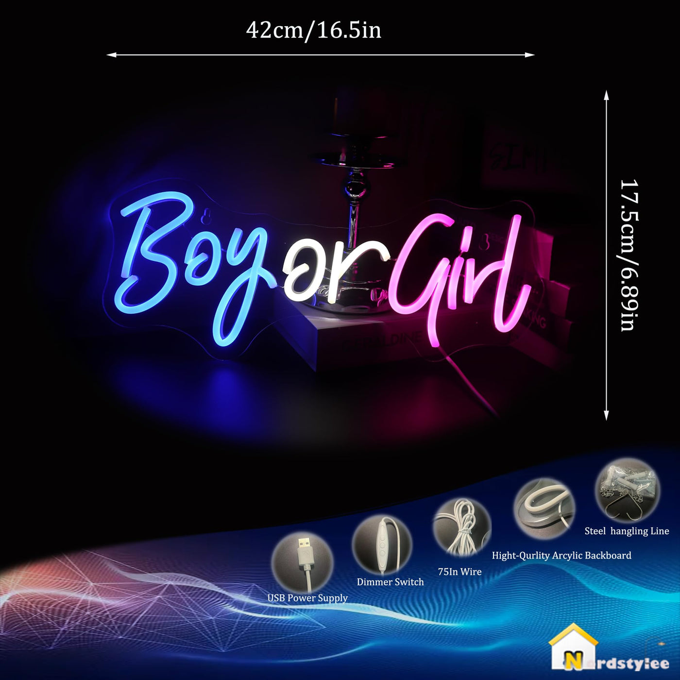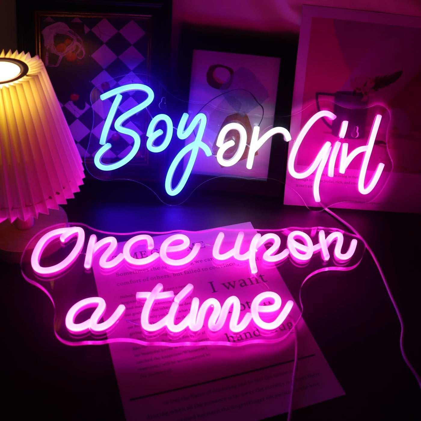 Nordstylee Led ''Boy Or Girl'' Neon Signs Gender Reveal Party Decorations Neon Letters Signs Pregnancy Announcement Party Suppli