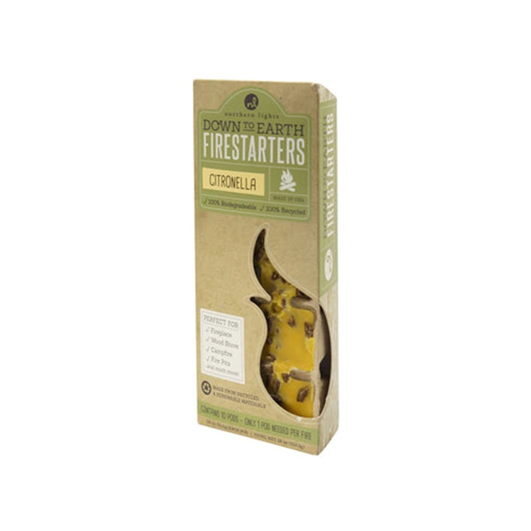 Northern lights firestarters are made from renewable and recyclable materials for conscientious campers. Fire starters are the fastest and safest way to build a fire in your fireplace, wood stove or campfire. Each pack contains 10 long burning scented fire starter pods. Each pod burns up to 30 minutes providing plenty of time to safely build your fire while keeping pests away.