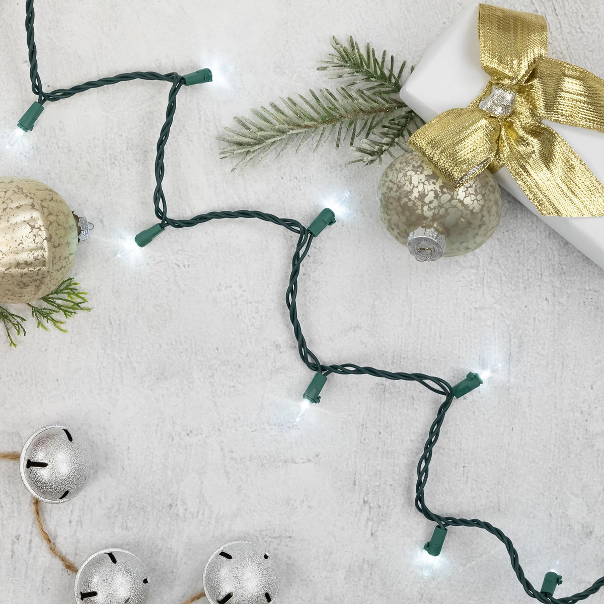 35 pure white LED mini bulbs on a green wire for a classic holiday look