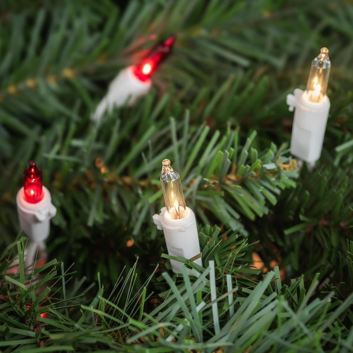 Q: How many bulbs are on the string, and what type are they?A: The string features one hundred mini incandescent bulbs.
