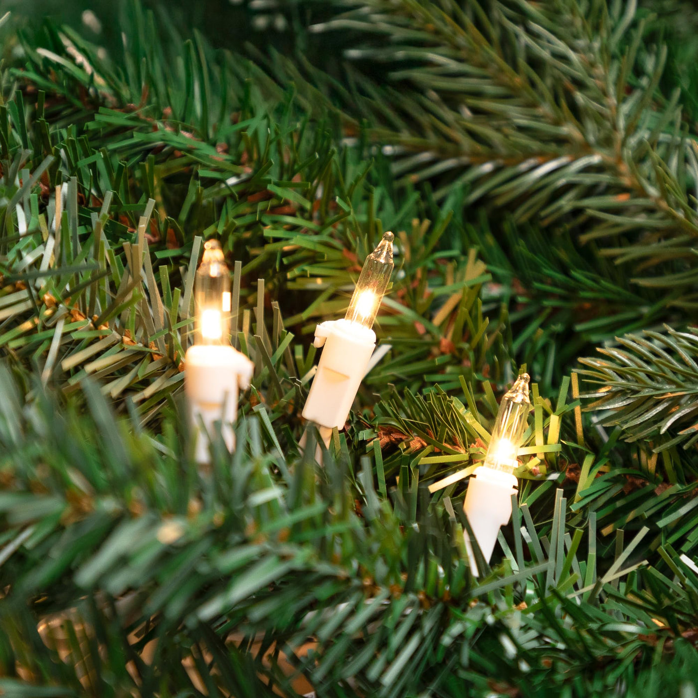 Featuring 10 clear incandescent mini bulbs on a crisp white wire, these lights are perfect for elegant decor. The bulbs are spaced 4.75 inches apart, providing an even and consistent shine across the 4-foot lighted length. With a 12-inch lead cord and an 18.5-inch tail cord, setup is effortless and straightforward. These UL-certified mini lights are safe for both indoor and outdoor use. They incorporate a Lamp Lock feature, ensuring that bulbs stay securely in place while allowing for easy replacement. If one bulb burns out, the others remain lit, ensuring uninterrupted illumination. Each set includes replacement bulbs, flasher bulbs, and spare fuses for added convenience. For larger displays, the lights come with end-to-end connectors, allowing you to connect up to 21 sets together without exceeding 210 watts. This feature is ideal for wrapping trees, decorating fences, and enhancing rooflines or windows.